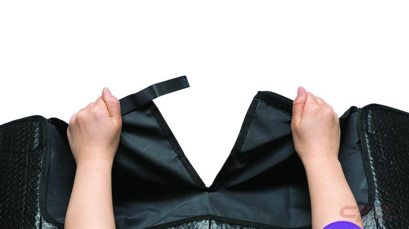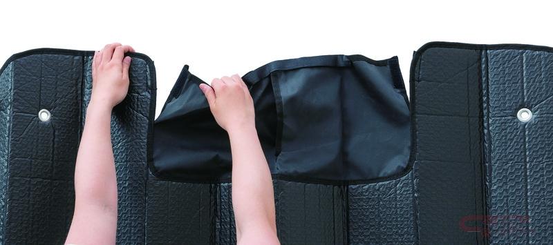 表面のアルミ素材には断熱効果の高い2層構造を採用し、サイズはM・L・XLの3種類をラインナップ。軽自動車から1BOXカーまで、車のサイズに合わせて選べる。また、リバーシブルタイプで裏面は黒色のため、車中泊で使用する際など、車内を暗くする効果がある。