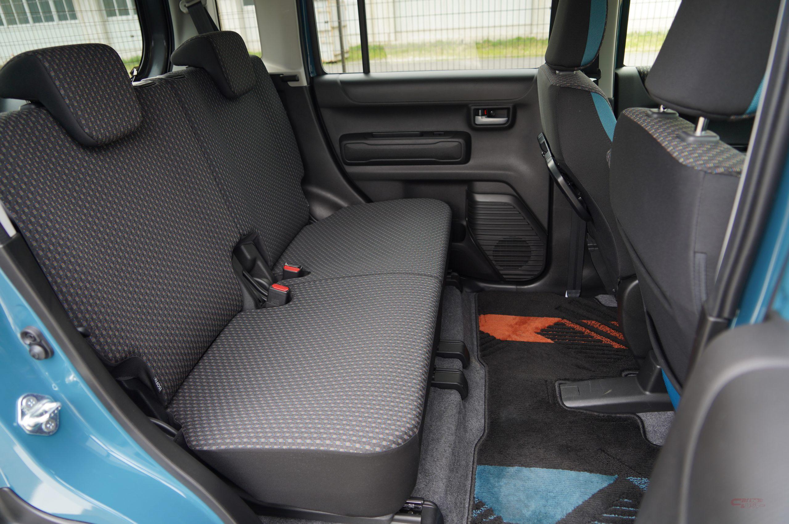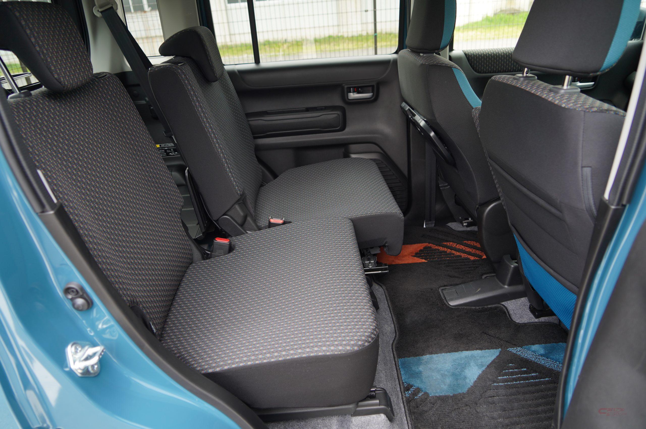 ハスラーの収納スペースはかなり豊富に用意されていて、後席はリクライニング機構&スライド機構付きで利便性も良好です。