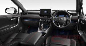 このPHVモデルは、RAV4の最上級モデルに位置づけられ各部に専用デザインを採用した。専用フロントグリルやロアモールがPHVとしての個性を引き立て、19インチアルミホイール等が都会に映える上質感を付与している。