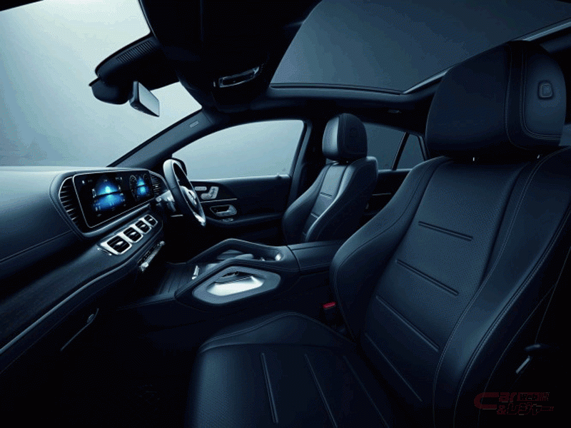 ほかにも、AIRMATIC サスペンションや、フットトランクオープナー(テールゲート自動開閉機能)を標準装備しているほか、各種ヒーターやパフュームアトマイザー、シート設定、照明、音楽等のシステムを統合的にコントロールする「エナジャイジング コンフォート」や、自然対話式音声認識機能を備えた対話型インフォテインメントシステム「MBUX」を搭載。Qi 規格対応機種の携帯電話を無線充電する「ワイヤレスチャージング機能」を前席に全車標準装備しているのに加え、テレマティクスサービス「Mercedes me connect」を標準設定している。