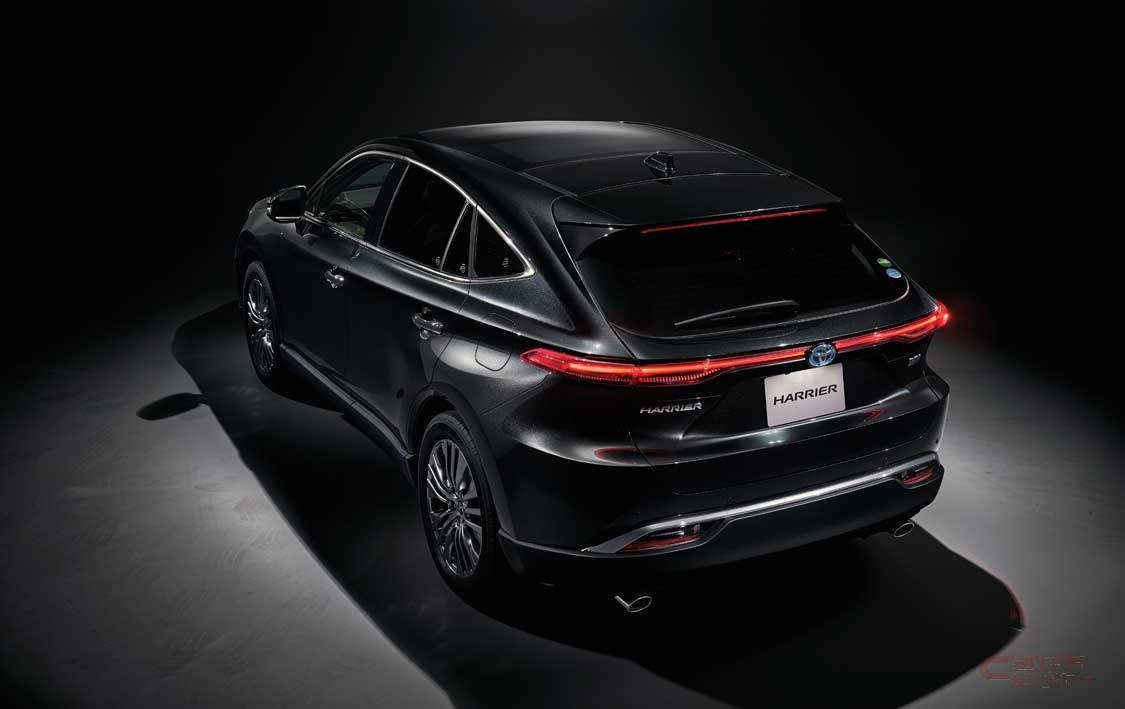 新型ハリアーのエクステリアは、フロントアッパーグリルからヘッドランプへと流れるような連続性による精悍でシャープな印象のフロントビューやシグネチャーランプを持つ。また、ダイナミックにボディ断面が変化しているサイドビューや、絞り込まれたクーペキャビンとスポーツカーのように左右に張り出したホイールハウスを組み合わせたリヤビューに、横一文字に光るテールランプとストップランプ等で存在感を高めている。外板色では、プレシャスブラックパールをはじめ、彩度を抑えたカラーを中心に全7色を設定した。