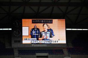 さらに、キックオフ前には吹田市・後藤圭二市長と、大阪府・吉村洋文知事がそれぞれ挨拶。選手入場後には吉村知事のバーチャルキックインが行われた。そして、医療従事者へ感謝の気持ちを伝える拍手が行われた。