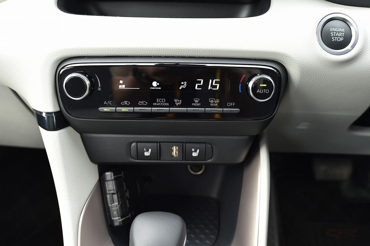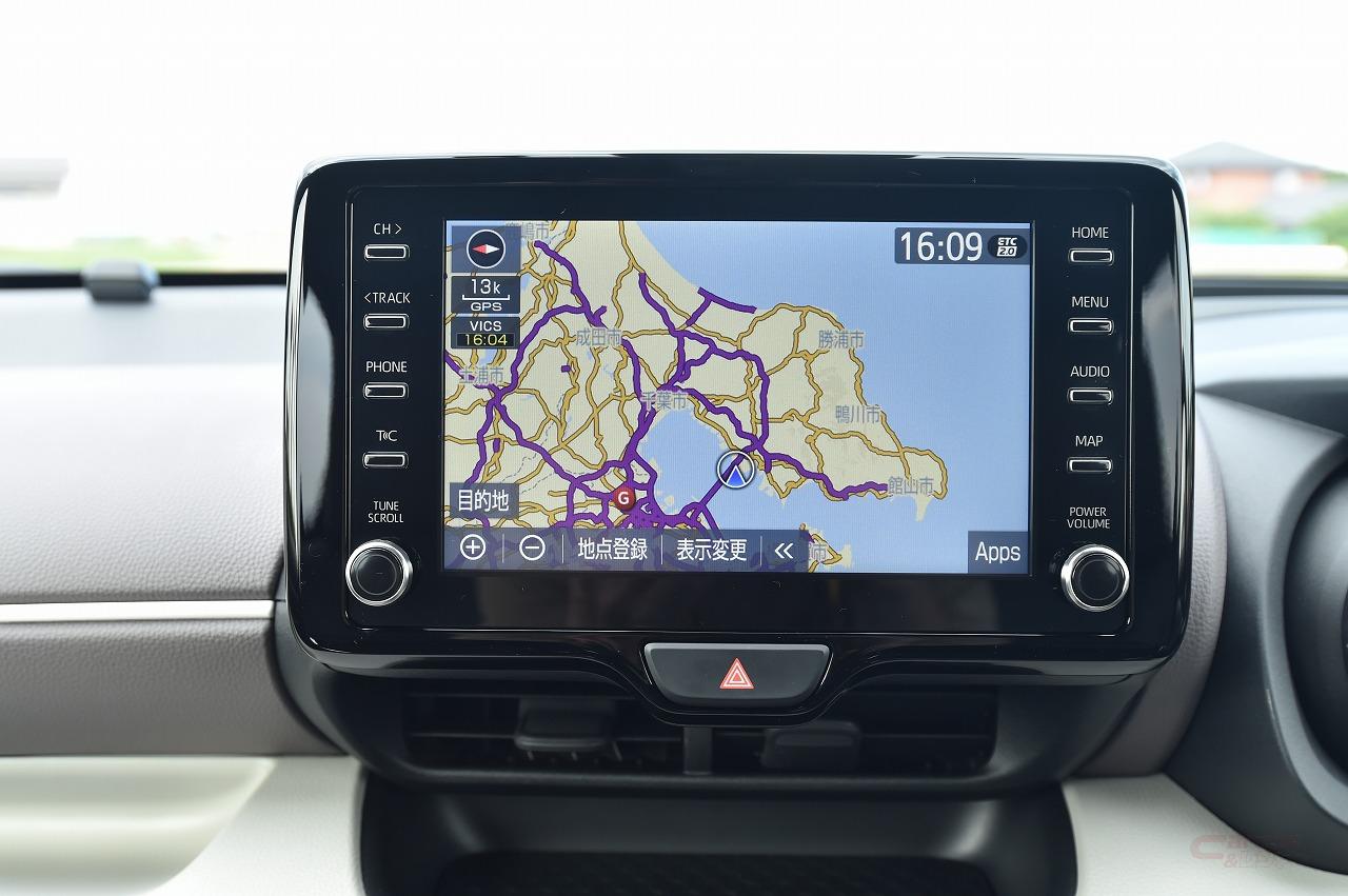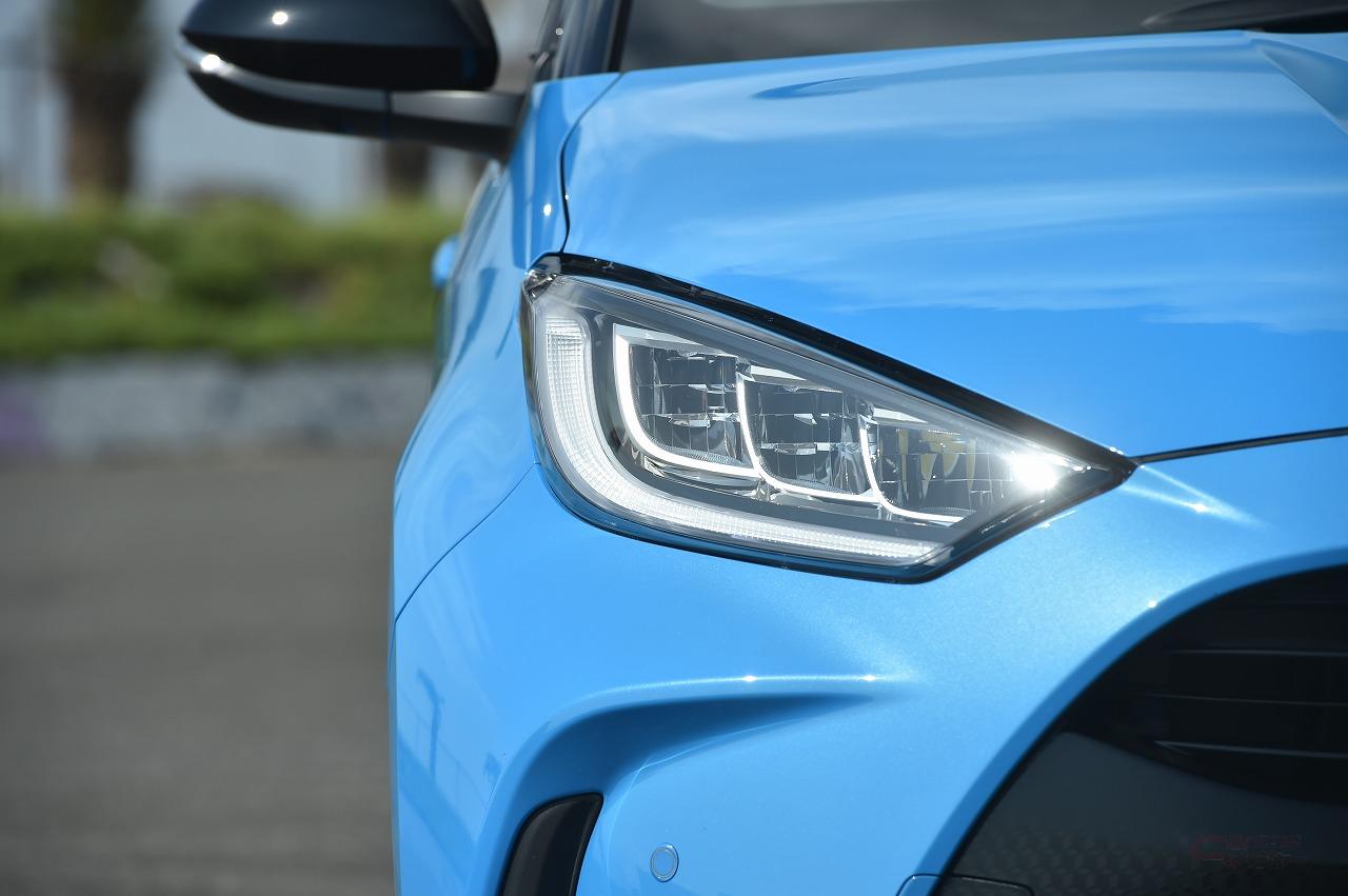 アドバンスドパーク(高度駐車支援システム、オプション)を始めとする、先進安全装備の充実もヤリスの特徴。LTA(レーントレースアシスト)は、走行車線の中央をしっかりと走行し、従来のような車線内をふらつくような制御は見られなかった。もっとも、ヤリスの直進安定性は非常に高く、ハンドルに手を添えているだけでもクルマは真っすぐ走行する。ただ、電子パーキングブレーキを採用していないからか、ACC(アダプティブクルーズコントロール)とLTAが時速30km以下で作動しないのは残念な点。現在は軽自動車でも採用車種が増えており、高速を使うユーザーにとっては利便性も高まる機能なので、マイナーチェンジなどで全車速対応になることを願いたい。