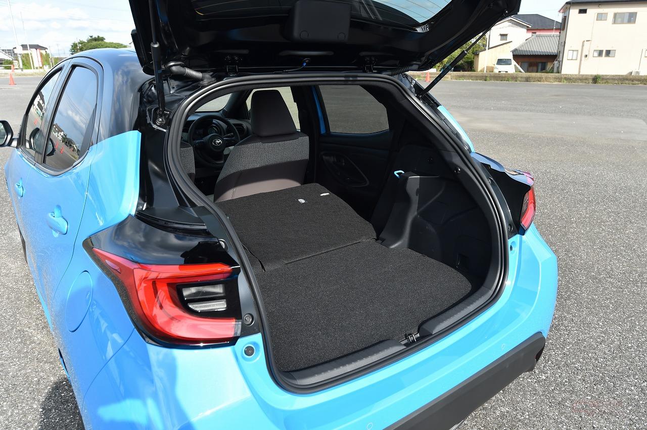 ハイブリッドとガソリンで特に内外装デザインに差異はなく、荷室や後席の使い勝手なども基本的には同じ。走りはじめてみると、ハイブリッドで感じられたパワフルさはないものの、発進用ギヤ機構付自動無段変速機の「Direct Shift-CVT」によって、出足の加速でもたつくようなことはなかった。試乗は常時大人3名乗車であったが、登り坂や高速での合流といったパワーが欲しい場面でもストレスの無い走りを見せてくれた。