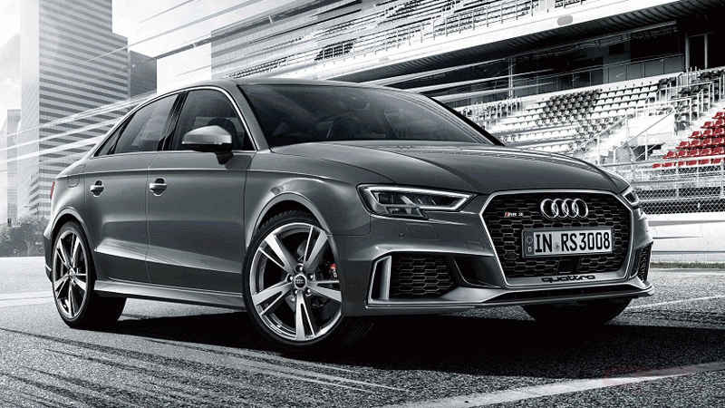 「RS 3 Sportback」および「RS 3 Sedan」は、プレミアムコンパクトモデル「A3シリーズ」のトップに位置付けられ、ツーリングカーレースのTCRカテゴリーに参戦する「RS 3 LMS」のベースモデルとなる「RS 3 Sedan」は、レーシングカーRS 3 LMSのストリートバージョンにも位置付けられる、モータースポーツ直系といえるコンパクト高性能セダン。最高出力400PS、最大トルク480Nmを発揮するオールアルミ製の2.5L直列5気筒TFSIガソリン直噴ターボエンジンを搭載し、7速Sトロニックトランスミッションとquattro フルタイム四輪駆動システムを組み合わせており、優れた高速安定性と操縦安定性を実現したほか、0-100km/h加速タイムはわずか4.1秒を達成している。