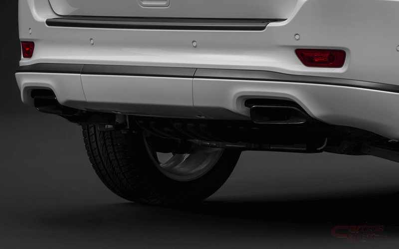エクステリアでは、力強いパワーバルジが印象的な「SRT8」譲りのエンジンフードに加え、フロントフェイシアに3分割式のロワ・エアインテークやグラナイトクリスタルアクセントを持つ、「サミット」と共通のボディ同色フロントバンパーを装備しているほか、グラナイトクリスタルのアクセントカラーを施したブラックグリルや20インチアルミホイール、エクステリアバッジ、ボディ同色処理を施したドアハンドルやサイドシルエクステンション、グロスブラックのドアミラーカバーなど、細部にまで貫かれた特別なカラーコーディネイトが施されている。