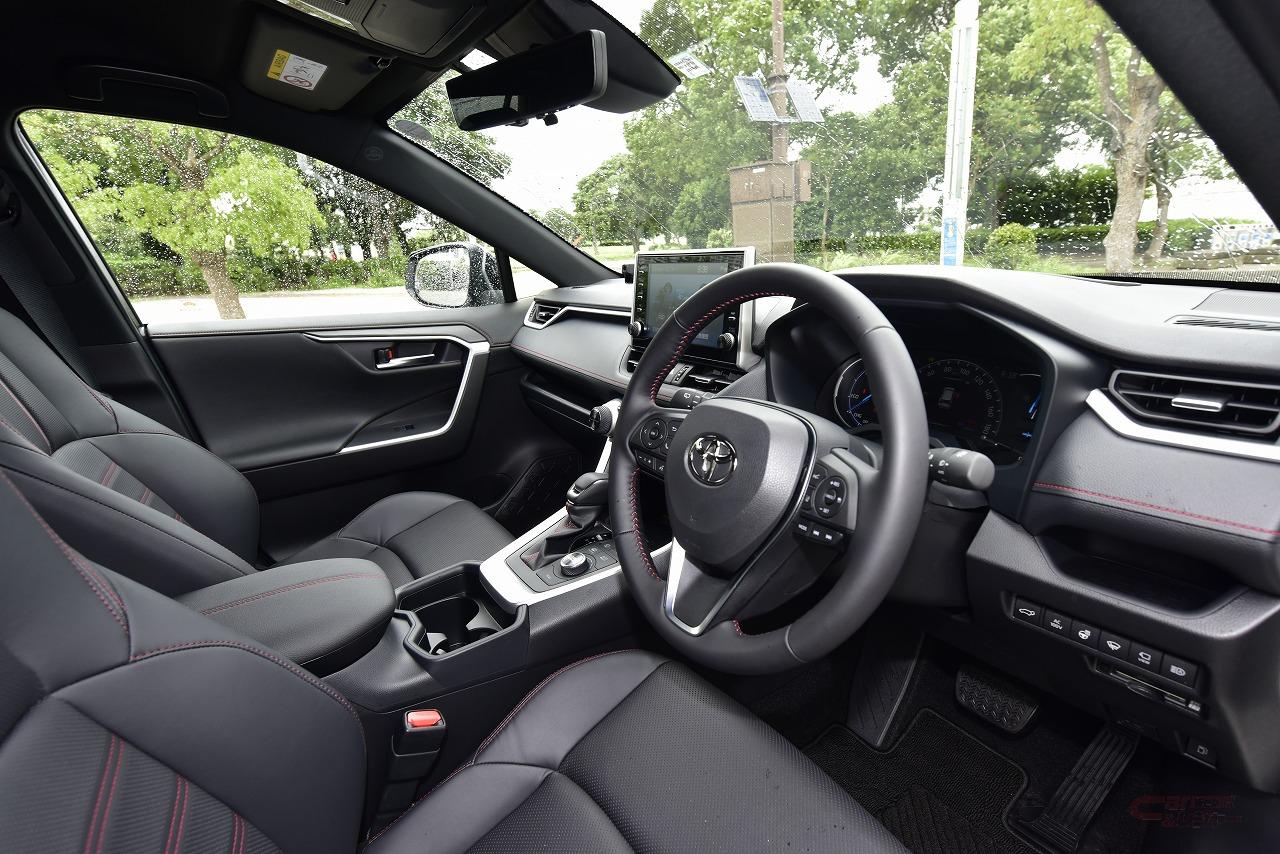 内装においては大きな変化は無いのですが、専用の赤いステッチが付いたり、RAV4の初期モデルにはなかったヘッドアップディスプレイや後席シートヒーター、助手席パワーシートなども装備されています。