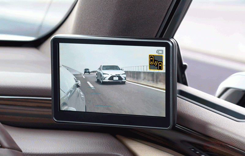 今回の一部改良では、デジタルアウターミラーを“F SPORT”に追加設定し、さらに車速に応じて車両後端から最小5m~最大30mの距離を示す線を表示して、走行時にモニターから見える他の車両、壁、障害物との距離感を測りやすくする距離目安線の表示機能を追加したほか、パーキングサポートブレーキ(静止物+後方接近車両)[PKSB]やブラインドスポットモニター[BSM]を全車標準設定とした。