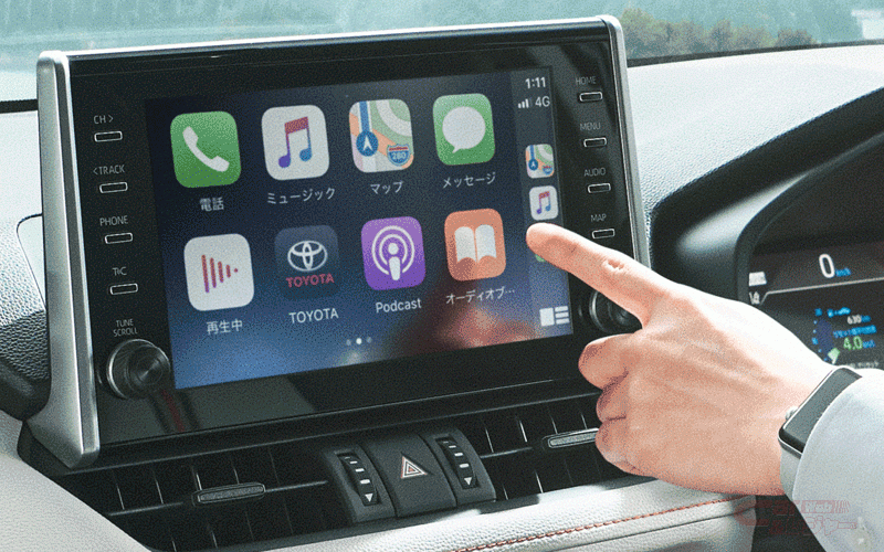 今回の一部改良では、スマートフォンとの連携が可能なディスプレイオーディオ(以下、DA)を全車に標準装備した。DAは、SmartDeviceLinkTM対応のスマホアプリ(TCスマホナビや音楽・ラジオのアプリなど)やApple CarPlay、Android AutoTMのマップ・電話・メッセージ・音楽アプリをDA上で操作・利用ができるほか、運転中もハンズフリー通話や音声による機能操作が可能となっている。