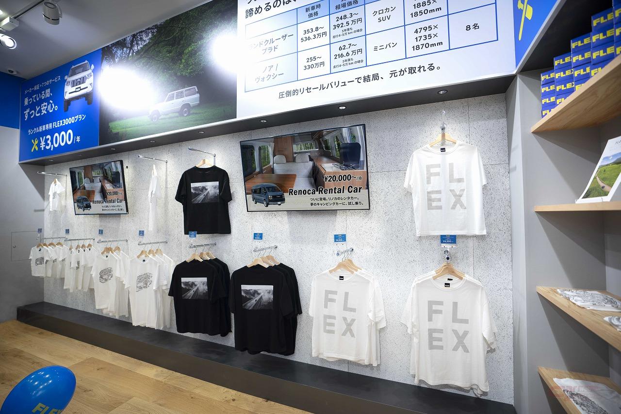 フレックスの店舗としてイオンモールへの初出店となる新店舗は、全国にある在庫車の紹介から商談も可能。子供用のオリジナルTシャツをはじめ、他店にはないフレックス・オリジナルグッズを多数用意するほか、映画の待ち時間に、夕飯の買い出しついでに、「なんとなく」「気軽に」「気兼ねなく」来店してもらうことを目指した店舗になったとしている。