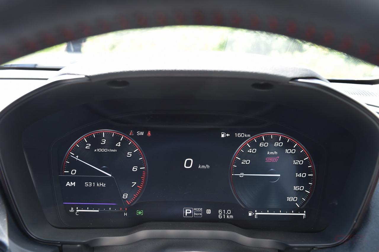 最上級グレードのSTI Sportには電制ダンパーと、ドライブモードセレクトをスバル初採用。五つの走行モードが設定され、コンフォートでは高級車に匹敵する乗り心地、スポーツ+ではアクセルオフでも後輪への高い駆動力を保ち、旋回性を高めるなどスポーツカー並みの操安性、トルク感などを実現する。クルマの性格を大きく変えられ、複数のクルマの価値を1台で併せ持つ。