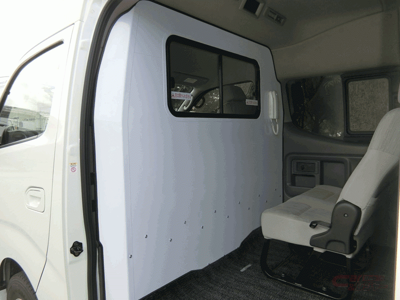 - 患者の乗る後部座席とドライバー席のある前列を隔てるパーテーションパネルを設置