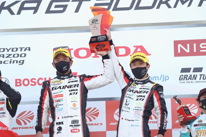 GT300クラスでは、予選7位からスタートした#11 GT-Rが、前半スティントを担当した安田選手が一つポジションを上げ、素早いピット作業で実質の2番手に浮上。バトンを受け取った平中選手がレース中盤にトップとなり、そのまま後続との差を大きく広げてフィニッシュし、今シーズン初優勝を飾った。