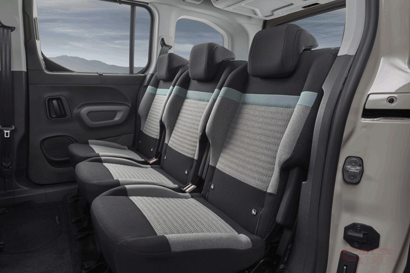 リアドアはスライドドアを採用して広大な開口部とドア開閉時の省スペースを実現し、リアシートは幅の等しい3座独立式を採用しているほか、個別に折畳みが可能な3座にはそれぞれISOFIXフックが装備されている。