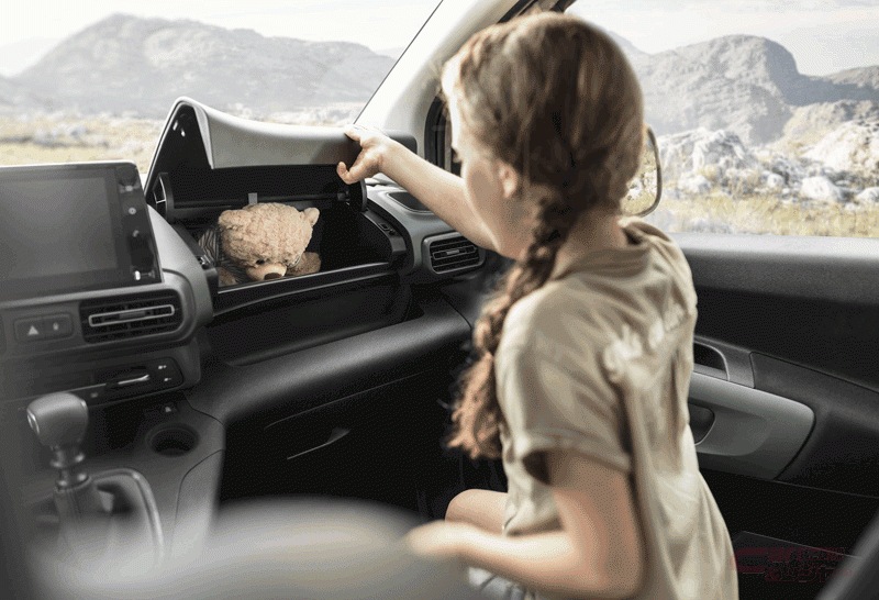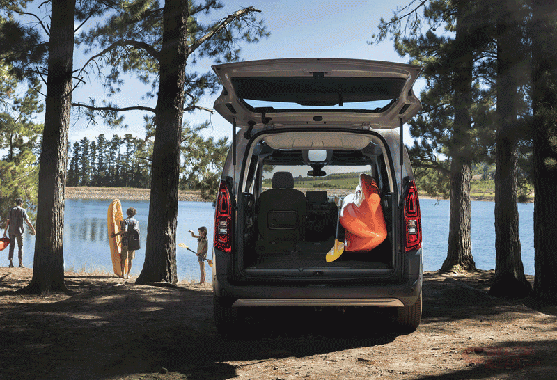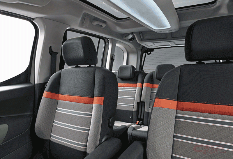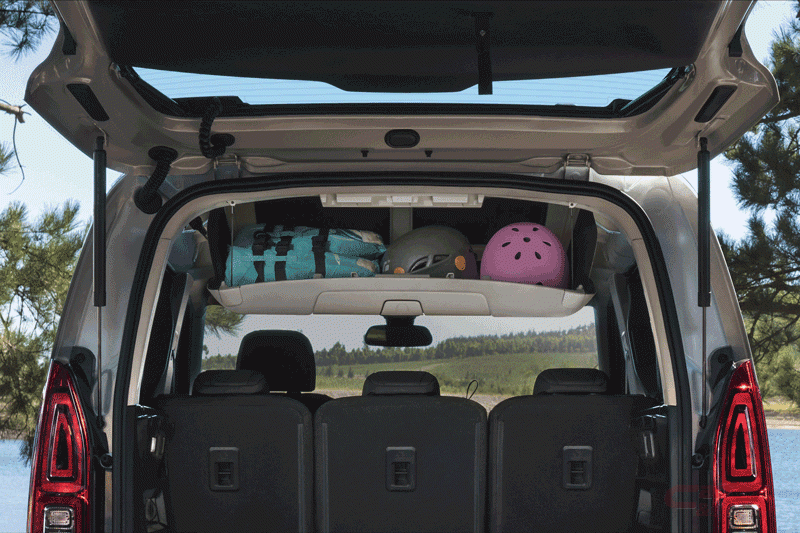 インテリアでは、シートをMagic Flat(マジック・フラット)と呼ばれる機能でワンタッチでフルフラット状態にすることが可能で、長さ=奥行きは5人乗り状態で0.94m(実測)、2人乗り状態で1.74m、助手席を倒せば最長約2.7mの長尺に対応可能となっており、容量は5名乗車時でトノカバー下597ℓ、2列目シートを倒した最大積載状態では2126ℓとなる(容量はFEELのVDA欧州参考値)。