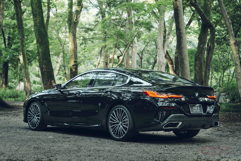 「8シリーズ グラン クーペ京都エディション」は、最高出力390kW (530ps)を誇る4.4LのV型8気筒BMWツインパワー・ターボ・ガソリン・エンジンを搭載した高性能Mパフォーマンス・モデル「M850i xDriveグラン クーペ」をベースに、エクステリアにはBMWインディビデュアル特別色のアズライト・ブラックを採用。アズライト(=藍銅鉱)は、日本の伝統絵画にも広く用いられた高貴な色であり、その深みある藍の色合いに、クロームのキドニー・グリルやウィンドー・モールディング、マルチ・スポークの20インチ アロイ・ホィールを組み合わせている。