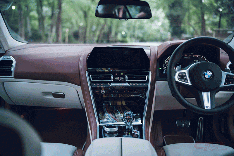 インテリアにおいては、BMW M社が誇る高品質レザーBMW Individualフル・レザー・メリノを、アイボリー・ホワイトとタルトゥーフォーとのバイ・カラー仕様で採用したほか、工場生産ラインオフ後に職人による手作業でステアリング・コラムやフロント・シート台座部分までレザーで覆う「BMW Individual Manufaktur(マニュファクチュール)」加工を施している。