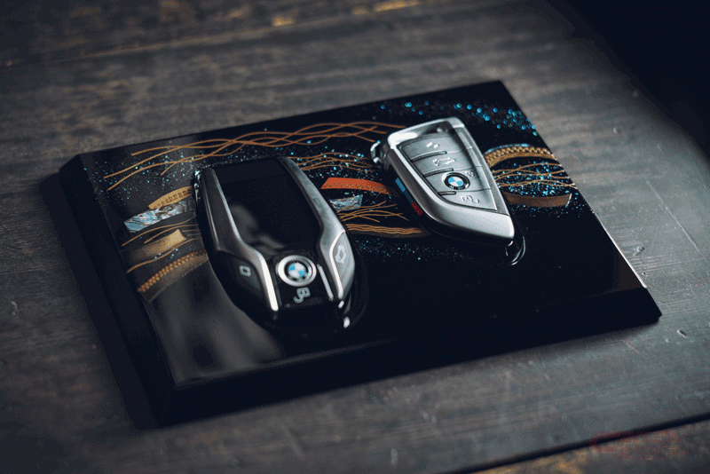 また、上記のドイツ クラフトマンシップの伝統を反映した内外装に組み合わされる日本の伝統工芸として、センターコンソール部分のインテリア・トリムには、京都を代表する漆芸家である岡田紫峰氏が手掛けた、「駆けぬける歓び」をモチーフに本限定車のみに特別にデザインされた漆塗り蒔絵螺鈿細工が施されているほか、トリムと同じデザインを施した蒔絵螺鈿細工の専用キー・トレイも設定している。