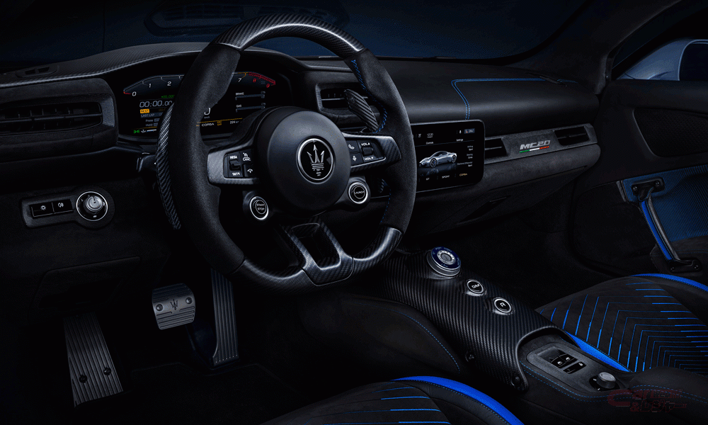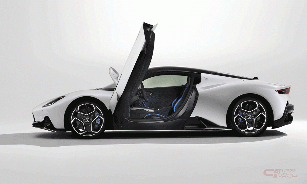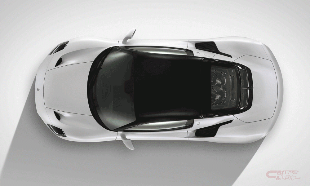 パワートレインは最高出力630ps/最大トルク730Nmを発揮する、100%マセラティ開発による新たな3L・V6エンジン「Nettuno(ネットゥーノ)」を搭載。0-100km/h加速は2.9秒以下、最高速度は時速325km以上を実現し、1,500kg以下の超軽量モデルであるとともにパワーウェイトレシオ2.33kg/psを実現している。