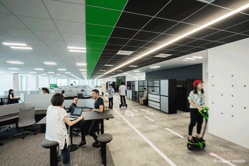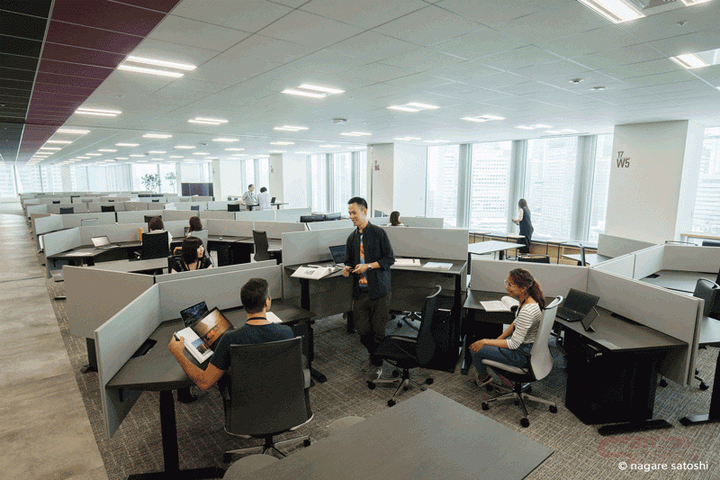 オフィスづくりの過程では、希望する社員全てが参加可能なワークショップやヒアリングを定期的に開催し、アジャイルなソフトウェア開発のためのスクラムに適したハニカム(ハチの巣)型デスクレイアウトの採用やパーソナルモビリティの導入など、社員の想いやアイデアを数多く取り入れている。