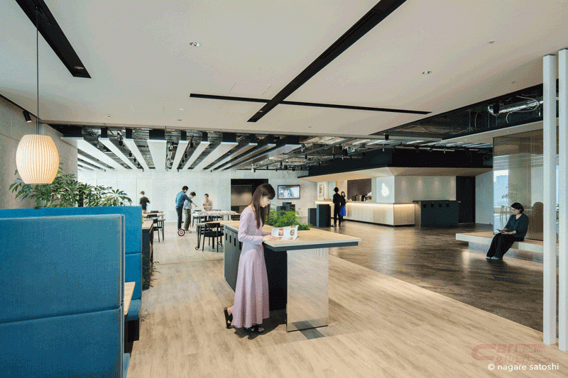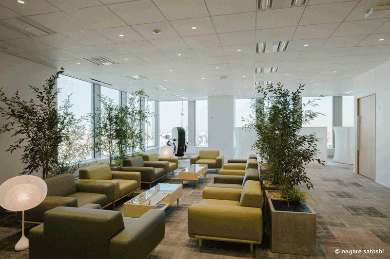 また、新たに「WISH STORE/WISH TOWN」と呼ばれるシステムを取り入れ、社員とともに成長し続けるオフィス作りに取り組んでいる。「WISH STORE」では、社員がオフィスに対する希望=「WISH」を「WISH STORE」に登録し、他の社員が共感した場合は「いいね」をクリックする形で応援。それぞれの「WISH」は建物として「WISH TOWN」というバーチャルな街に現れ、「WISH」の「いいね」が多くなると建物が大きくなり、「WISH TOWN」が育っていく。社員から募集したアイデアを実現するためのコミュニケーションにも工夫を凝らし、社員が一体となり楽しみながらオフィスを作る環境を整えている。