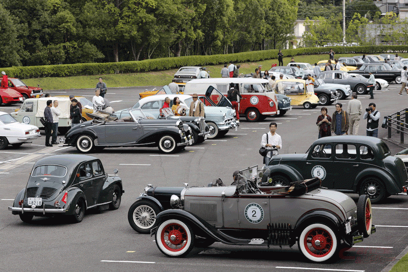 パレード参加車両約50台がトヨタ博物館P2駐車場に集結。参加オーナー全員にインタビューを行い、愛車とのエピソードを掘り下げ、その様子をYouTubeで生中継。
