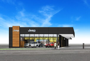 今回移転新築オープンする「フィアット・アバルト広島」は、広島県広島市佐伯区の西風新都エリアに位置し、国内最大級のショールーム、敷地面積6241㎡、7台展示可能なブランドフラッグシップ店舗となり、視認性の高い角地に新築された建物全体の外観では、シルバーの外壁に内照式のフィアット・アバルトロゴをあしらった新CIを採用。建物ショールーム入り口横はキャノピーを設置しており、雨天にも対応した設計となっている。
