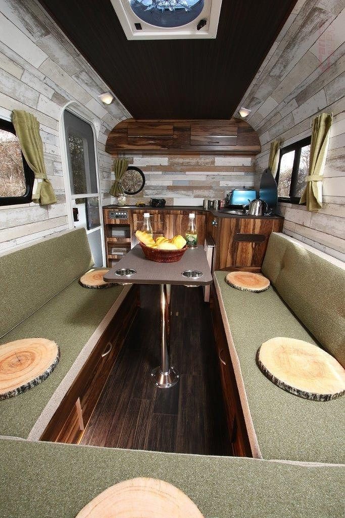インテリアは、レジストロシリーズの象徴であるウッドテイストを採用。室内はフロント側にキッチンスペース、リヤ側にコの字型のダイネットを配した。ダイネットはフルフラットベッド(1800mm×1640mm)へ展開でき、大人3名が就寝できるスペースを確保している。