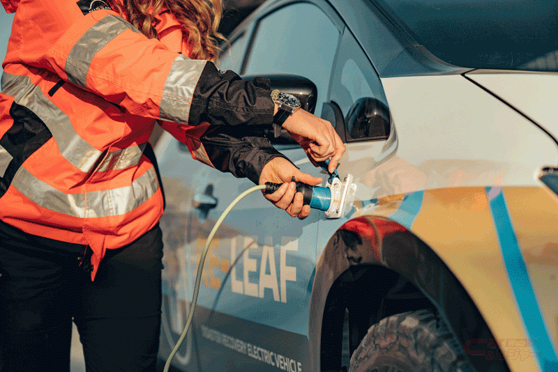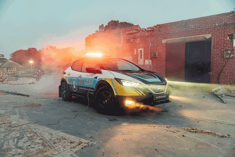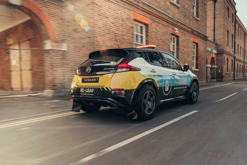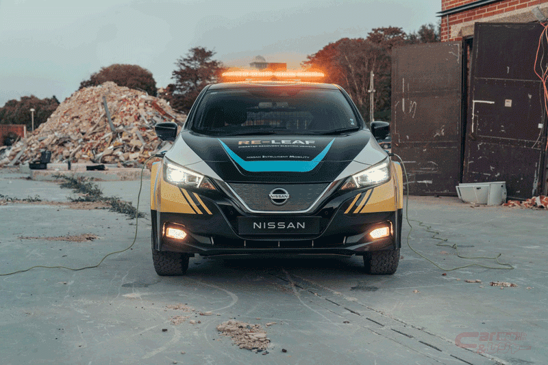 災害対策における緊急対応(emergency REsponse)、人道支援(humanitarian REcovery)、そしてコミュニティの強靭性(REsilience)の3つの「RE」を由来として名付けられた「RE-LEAF」は、量産電気自動車「LEAF」をベースとしており、同車に搭載されている電力供給機能を活用して製作されたコンセプトカー。瓦礫など障害物の多い災害時の悪路走行を可能とする改良を加えるとともに、簡単に電気を取り出せるよう、クルマのフェンダー部分に耐候性の高い電気ソケットを取り付け、搭載する大容量リチウムイオンバッテリーから110~230Vの電気機器へ電力の供給を可能とした。また高められた悪路走破性により、被災地域を自由に移動し、復旧作業に必要な照明や作業ツールの電源としてだけでなく、通信や冷暖房など、被災者が必要とする機器に電力を供給する。