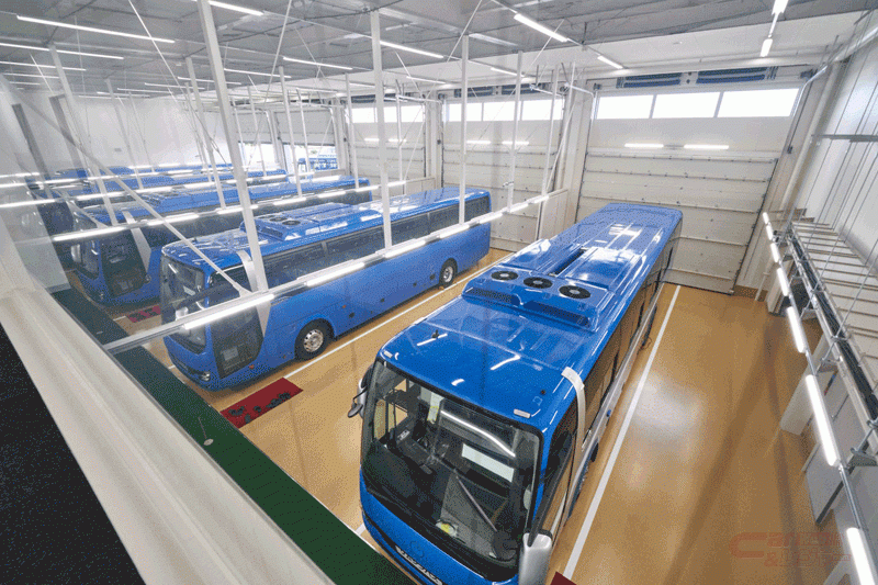今回新設した「ウェルカムセンター」は、大型バスを5台同時に検収可能にする5つのレーンに加えて、大型観光バスを2台展示することが可能なショールームを併設。5つのレーンは仕切りを可動式にすることで秘匿性を保持する。製造したバスを納車する前に、カスタマーと共に車両確認作業を行う検収設備をリニューアルすることにより、より正確な検収作業とカスタマー満足度の向上を図るほか、MFBM正面入り口道路に面したガラス張りのショールームには完成車両を展示することで、ふそうブランドと企業認知度向上を目指すとしている。