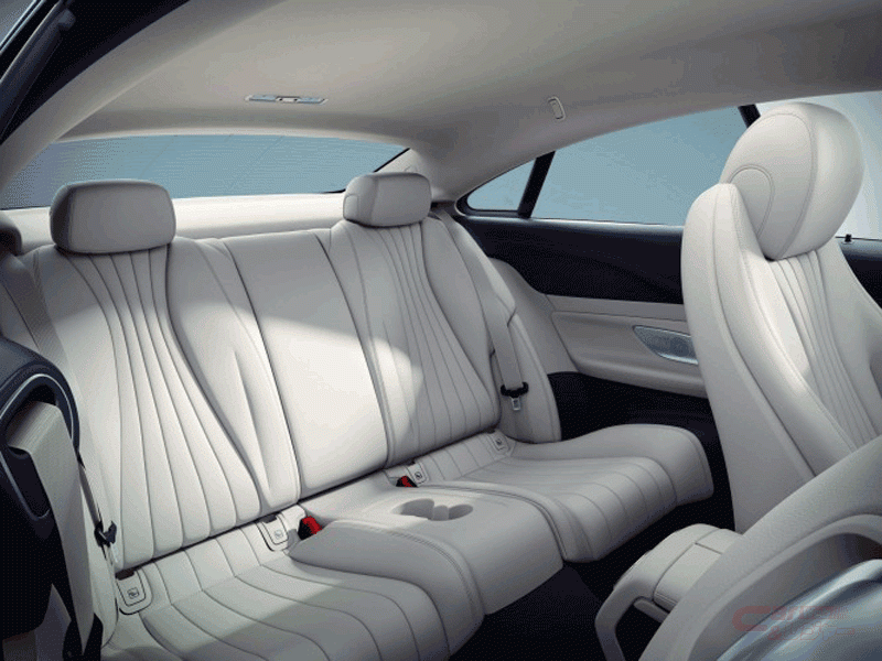 「Eクラス クーペ」は、メルセデスクーペの伝統的プロポーションである、流れるように美しいルーフライン、そのラインが流れ着く大胆で力強いリアエンドを踏襲。フロントセクションから低く立ち上がるAピラーと、高い位置を走るベルトラインとサッシュレスドアにより、メルセデスクーペ伝統のプロポーションを形成している。控えめでシンプルなラインと官能的な面、そして陰影の効果が相まって美しくエレガントなエクステリアを表現するとともに、スポーティかつ力強さも強調している。