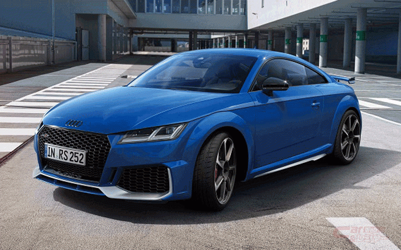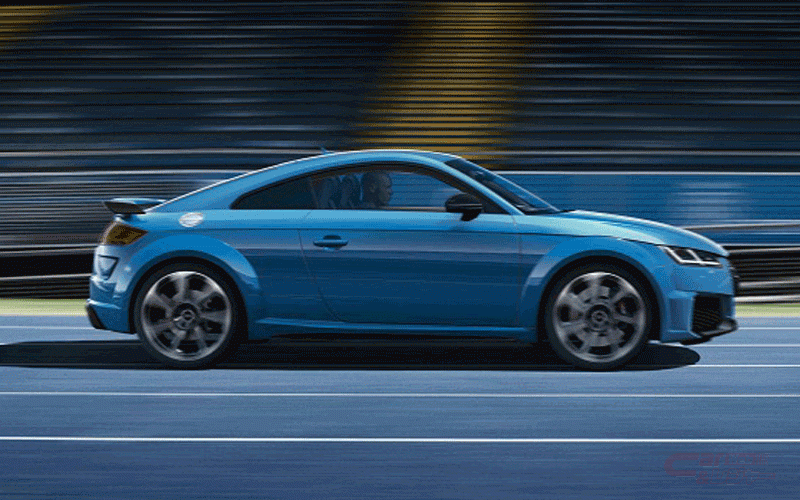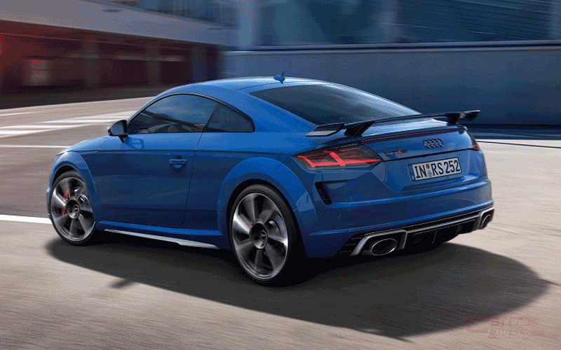 限定モデル「TTRS Coupé RS 25 years」は、ノガロブルー・パールエフェクトのボディカラーを採用。専用ロゴ付アルカンターラ/レザーシート(ブルーステッチ)、ステアリングセンターマーカーブルー、エクステンデッドレザー、専用ロゴ&ブルーステッチ入りフロアマット、マットアルミニウムルックのサイドスカート/フロントブレード/リヤディフューザートリム、ブラックのドアミラー/リヤスポイラーマウント/リヤスポイラーサイドブレード、ブラックAudi ringsなどの特別装備を採用。さらにカラードブレーキキャリパーレッド、デコラティブパネルカーボン、カーボンエンジンカバー、マトリクスLEDリヤライト、20インチアルミホイール、コンフォートパッケージ、プライバシーガラス、Bang&Olufsenサウンドシステムといった快適装備などを追加した。