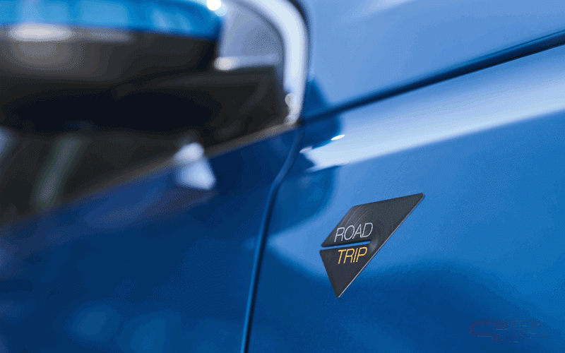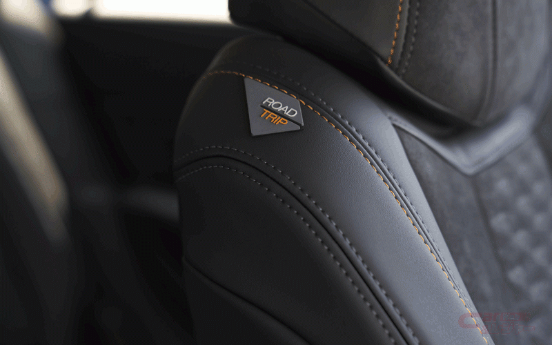 鮮やかなサンセットオレンジ&グレーステッチが特徴的で、シート表面のデザインも新タイプとなる。ステッチはドア トリム、ステアリング、フロアマットなどにも施されている。 - ROADTRIP エンブレム(フロントシート、フロントフェンダー、フロアマット)
