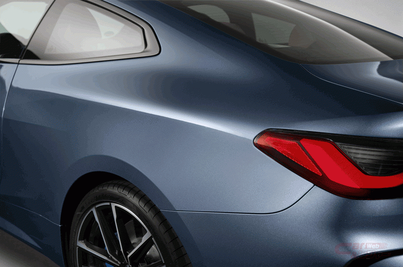新型「4シリーズ」のスポーティかつエレガントなデザインに加え、キドニー・グリル、エア・インテーク、エア・ブリーザー、ミラー・キャップに、Mパフォーマンス・モデル専用色となるセリウム・グレーを採用することで、ハイ・パフォーマンス・モデルとしての存在感と個性を演出。また、トランク・リッドには、Mリア・スポイラーを装備し、空力特性を高め、高速走行時の安定性を向上させた。