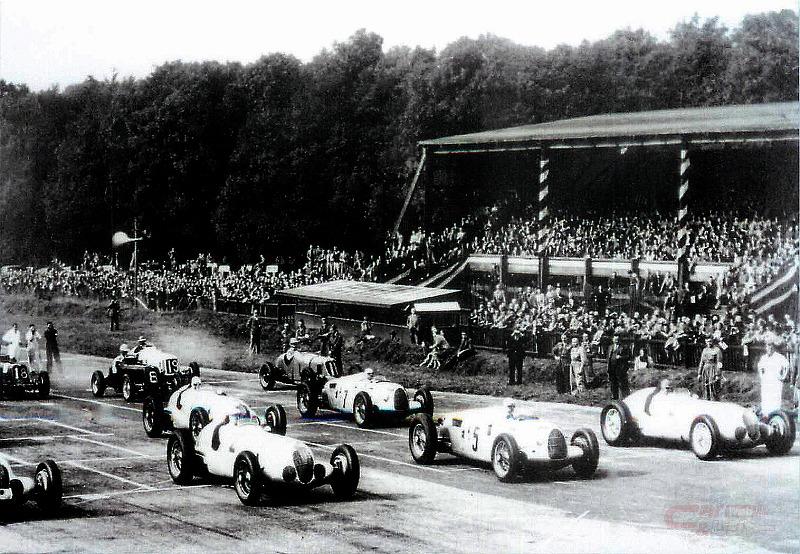 WWⅡ開戦直前の頃、ヒトラーの国策・国威高揚の後押しで生まれたメルセデスベンツW125型が猛威を振るい、GP優勝車の気筒容積は、5.7ℓと思ったほど大排気量ではないが、スーパーチャージャー加給で何と640馬力/5800回転を絞り出し時速300kph。