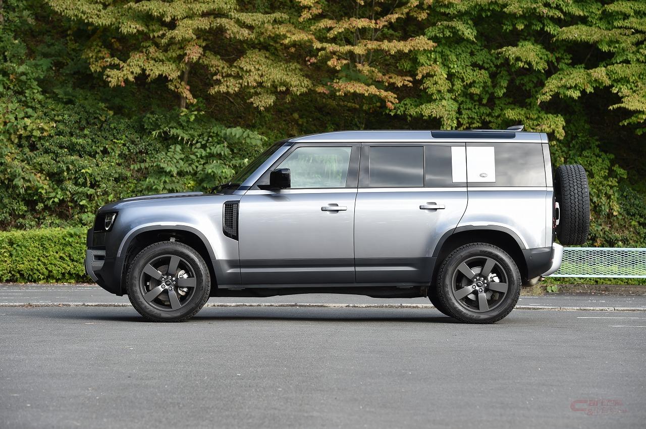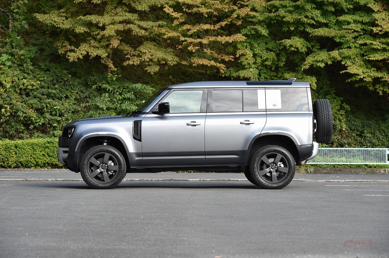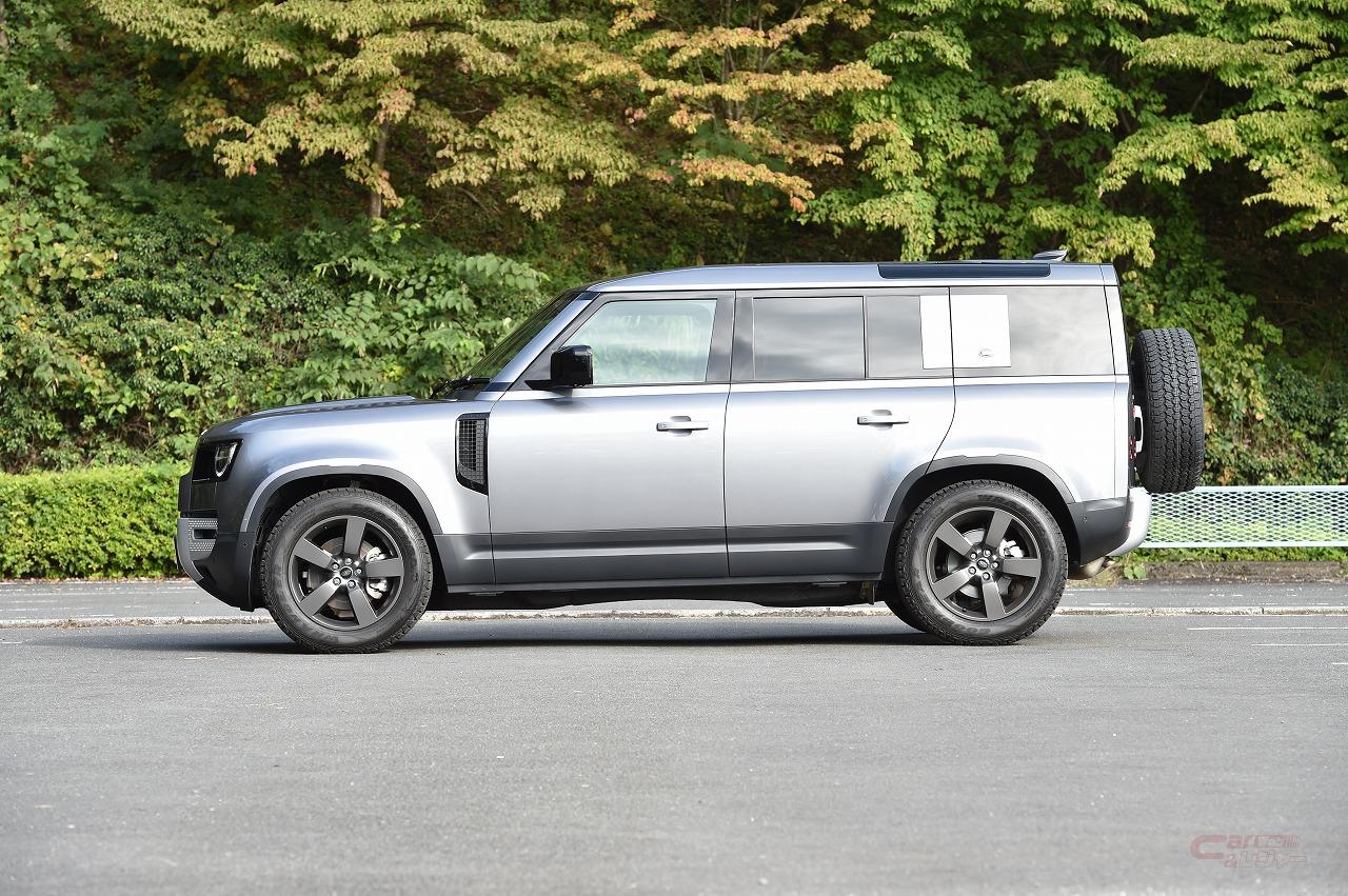 ボディバリエーションは、5ドアのディフェンダー 110(全長4945mm×全幅1995mm×全高1970mm、ホイールベース3020mm)、3ドアのショートホイールベースとなるディフェンダー 90(全長4583mm×全幅2008mm×全高1974mm、ホールベース2587mm※欧州仕様)の2種類を設定。欧州では48Vマイルドハイブリッドやディーゼルも設定されているが、国内に導入されるパワートレーンは、直列4気筒2.0Lターボ(最高出力300PS/最大トルク400Nm)に8速ATの組み合わせのみ。今回はディフェンダー110に試乗する機会を得た。