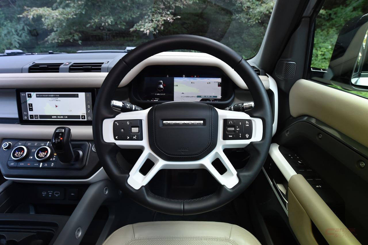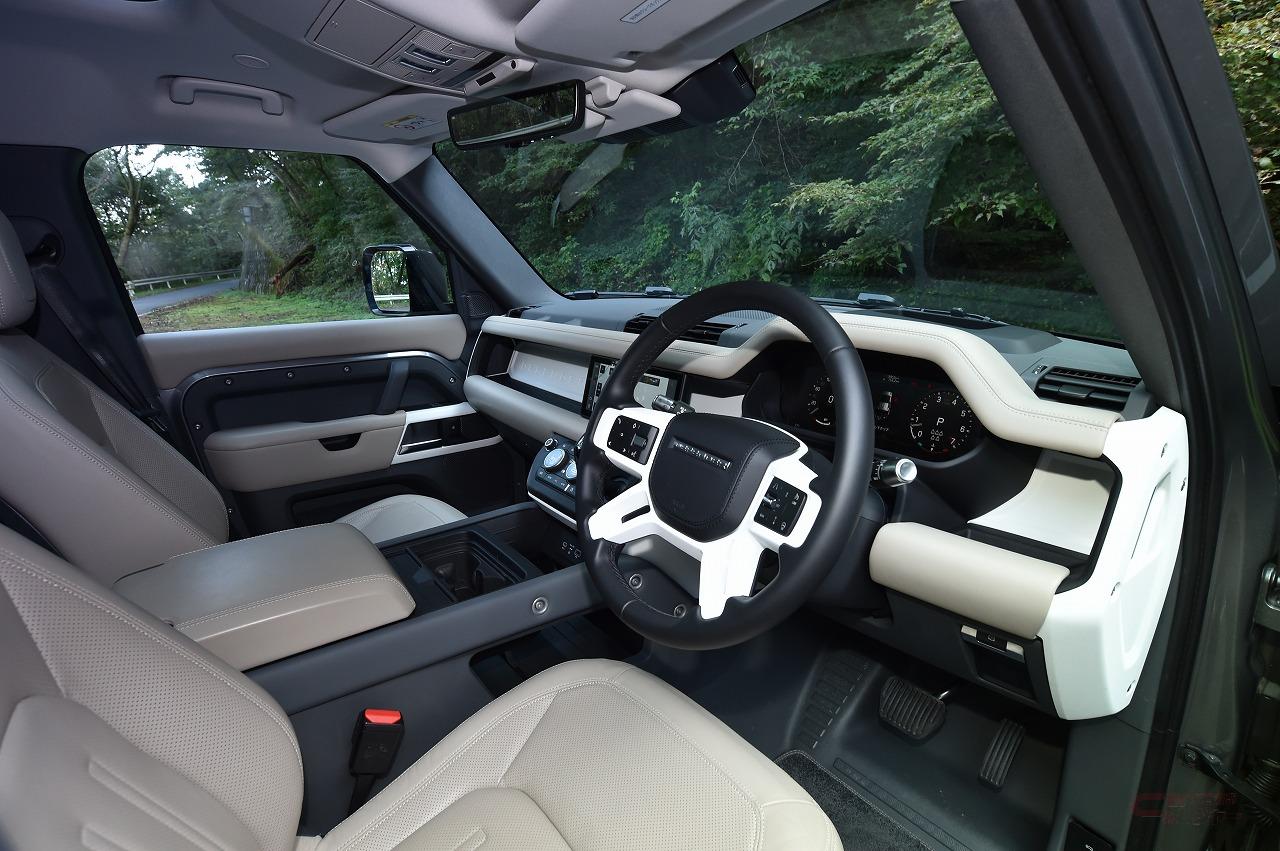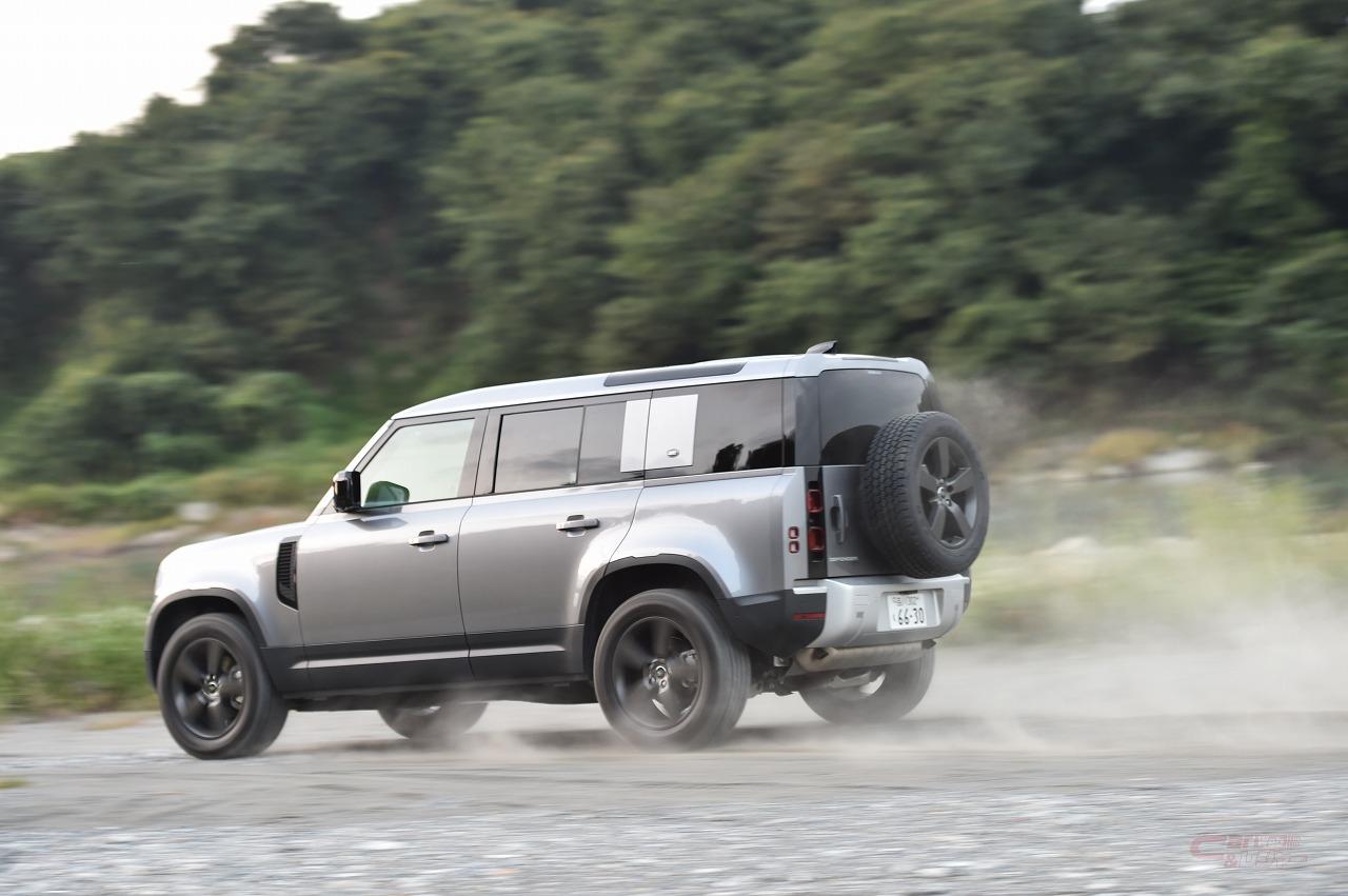 ディフェンダーはぬかるみや雪道でも走れるオールテレインタイヤを装着しているため、オンロードでの不快な突き上げなどが心配されたが、それは杞憂であった。走り始めると街乗りから高速域まで常に安定した乗り味で、特に剛性感のある走りは特筆すべきポイント。約2.2tの巨体でも2.0Lターボエンジンはパワー必要にして十分で、加速性能でも不満を覚えることは無かった。