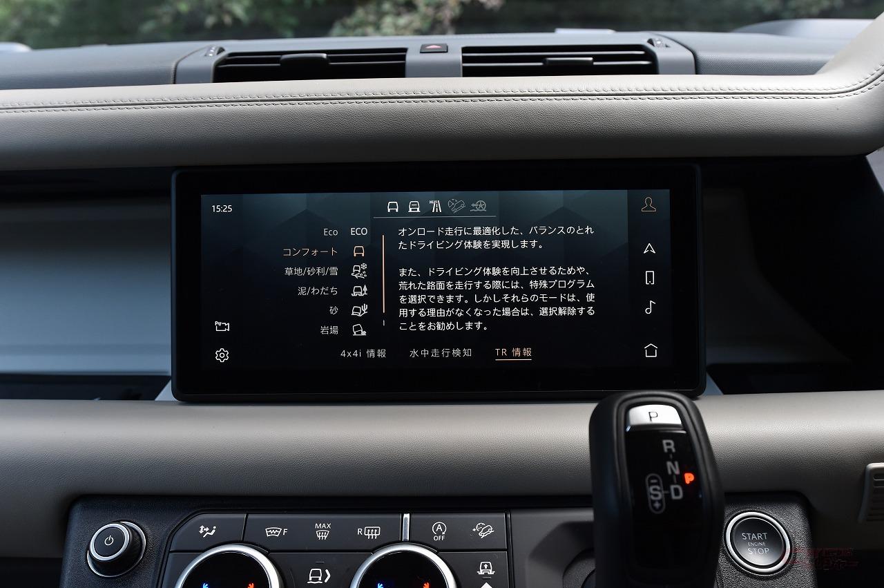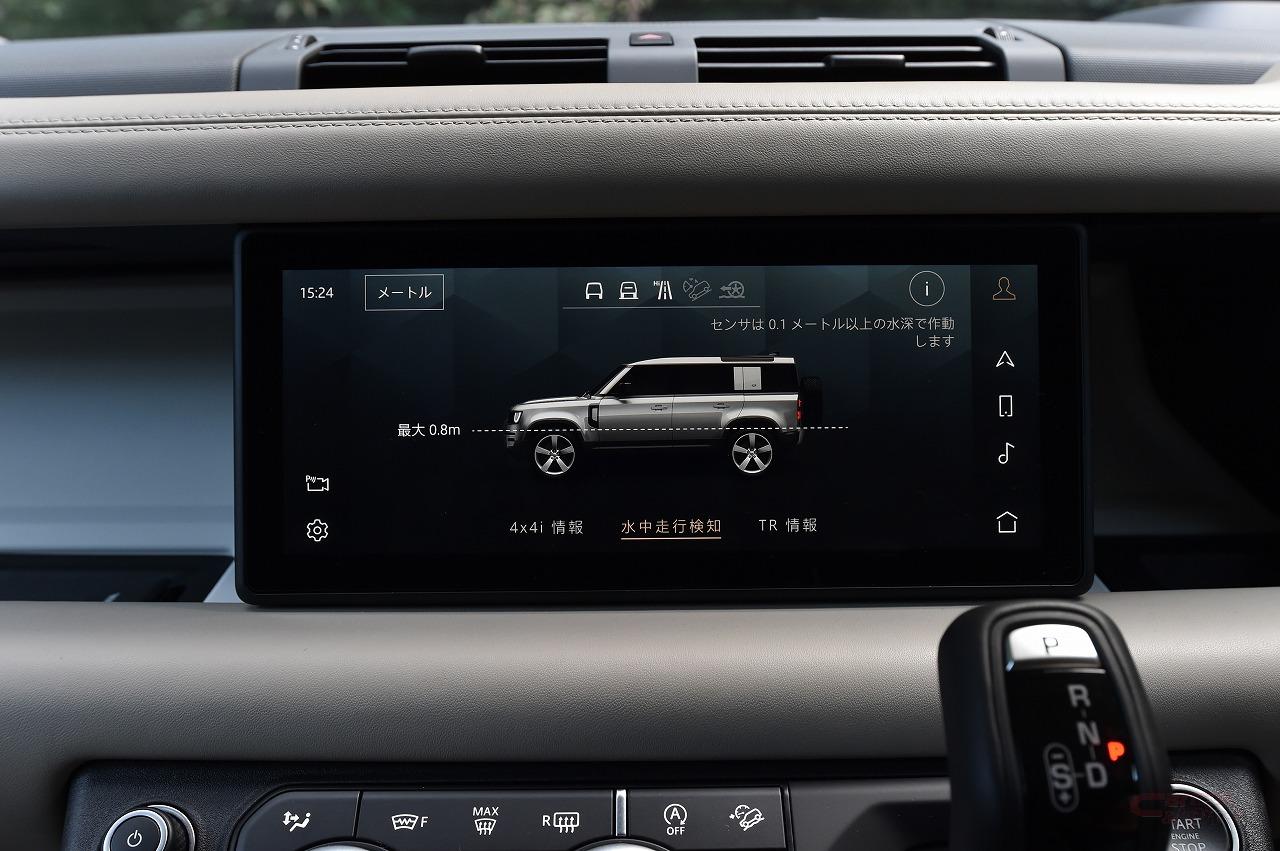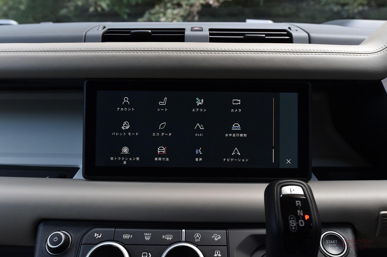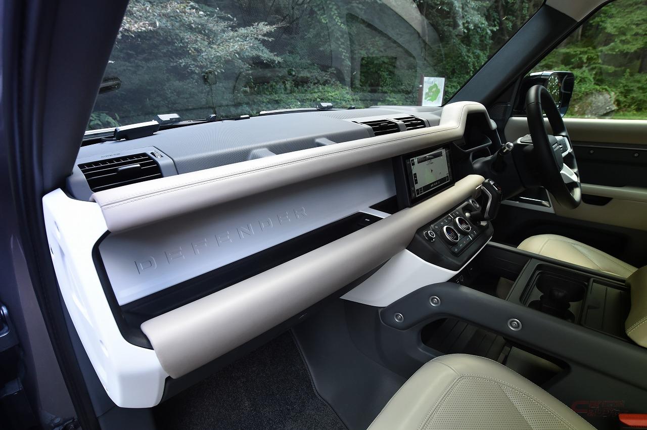 ディフェンダーはぬかるみや雪道でも走れるオールテレインタイヤを装着しているため、オンロードでの不快な突き上げなどが心配されたが、それは杞憂であった。走り始めると街乗りから高速域まで常に安定した乗り味で、特に剛性感のある走りは特筆すべきポイント。約2.2tの巨体でも2.0Lターボエンジンはパワー必要にして十分で、加速性能でも不満を覚えることは無かった。