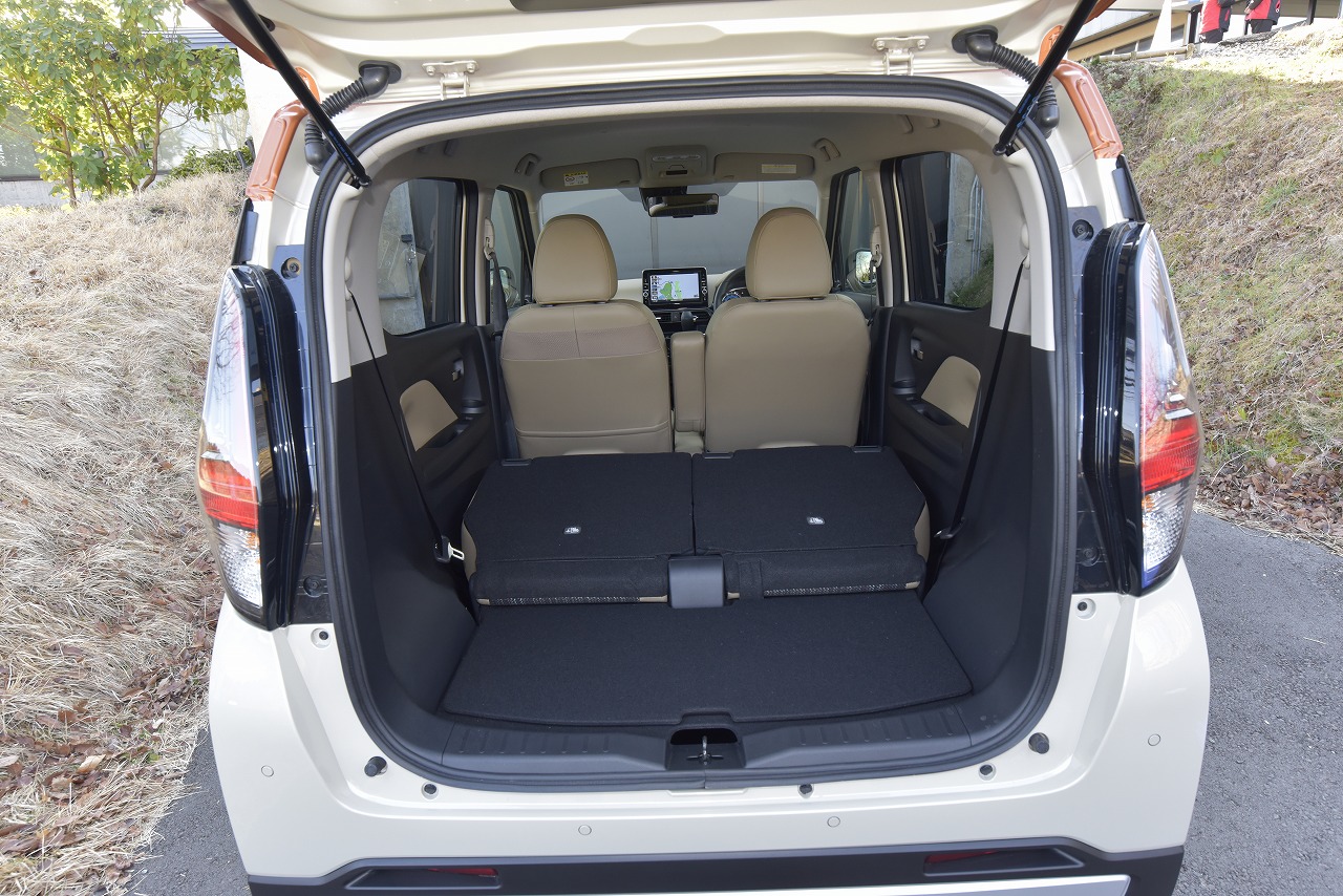 室内空間は新プラットフォームの採用で、これまで以上に広くなった。特に後席の広さが拡大しており、足元スペース、前席から後席背もたれまでのスペースはクラストップとしている。また同時に荷室も拡大。54Lの大容量となる床下BOXも備えており、A型ベビーカーも収納することが可能だ。さらに後席シートスライド機構も片手で操作できるよう改良され、使い勝手が高められている。