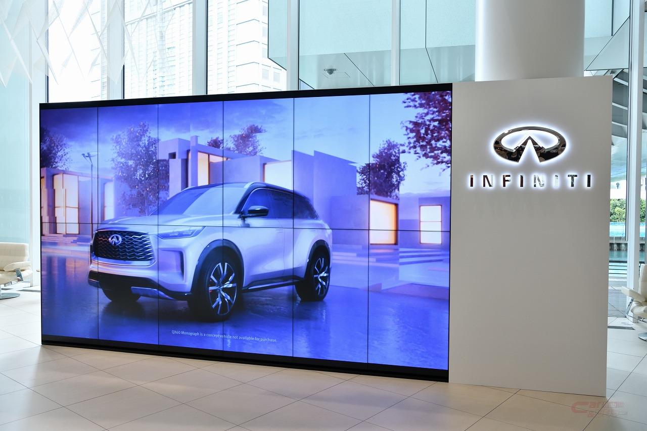 日産の高級車ブランド「インフィニティ」に特化したこのスペースには、オープンにあわせて先日披露した「QX60 Monograph」と今後のブランドのエキサイティングな方向性を示すセダン「Q インスピレーション コンセプト」を展示する。インフィニティラウンジでは今後、他のモデルも展示していく予定としており、モデルの交替展示スケジュールは適宜発表される。