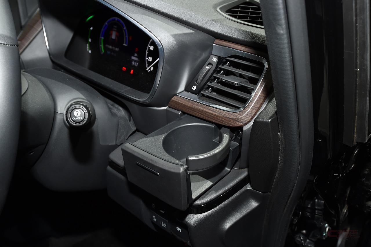室内の収納スペースでは、運転席側の収納式ドリンクホルダーや、リッド付きインパネアッパーボックスが新設定され、実用性を高めた。