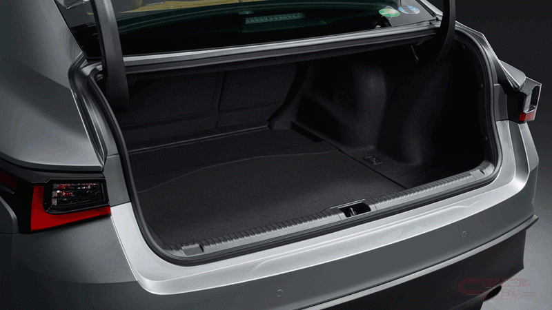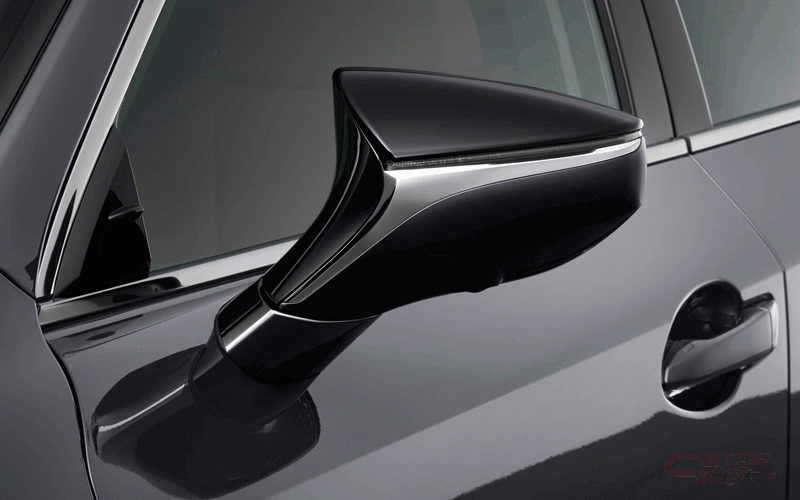 - ドアトリムの一部にLEXUSの新たな加飾表現である複数のエンボスラインを交差させたグラフィックパターンを採用。オーナメントパネルにアッシュ(オープンフィニッシュ/墨ブラック)、ブラックジオメトリーフィルム、F SPORT専用サテンクロムを新規採用した。表面処理などのアクセントをつけることで、素材本来の質感表現にこだわったスポーティな室内空間とした。