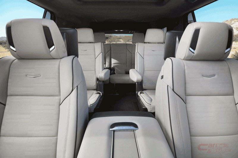 4台の外部カメラで撮影した車両周辺の状況を、200万画素の鳥瞰図で表示する「サラウンドビジョン」を標準装備。最大 9つのカメラビュー(リアカメラガイドラインを含む)を提供し、より簡単なヒッチ操作をサポートする牽引統合パッケージを採用した。新型の「リアシートエンターテインメント」は、クラス初の12.6インチ独立タッチ式HDディスプレイを左右のシートバックに備え、HDMIおよびUSB入力を介してゲーム、音楽、映像を再生するストリーミング機能、スマートフォンのミラーリングが可能となっている。車内各所に各種充電/入力ポートを用意したほか、フロアコンソール内冷蔵庫には冷凍機能も追加した。