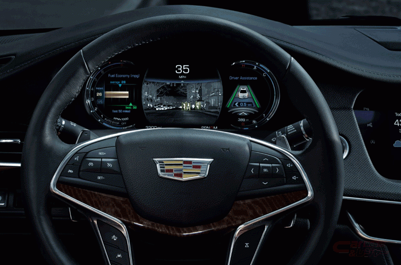 自動車業界で初めて「エスカレード」に搭載される「湾曲型OLEDディスプレイ」は、対角線の長さが38インチ超の大型ディスプレイエリアを備え、現在生産されている車載用ディスプレイの中で最大の色域(ピクセル密度が4Kの2倍)を提供する。鮮やかな色や画質を特徴とするOLEDは、車両ディスプレイを覆うフードの必要がなく、より明るく乱反射のない環境を作り出し、湾曲形状で視認性を向上させている。