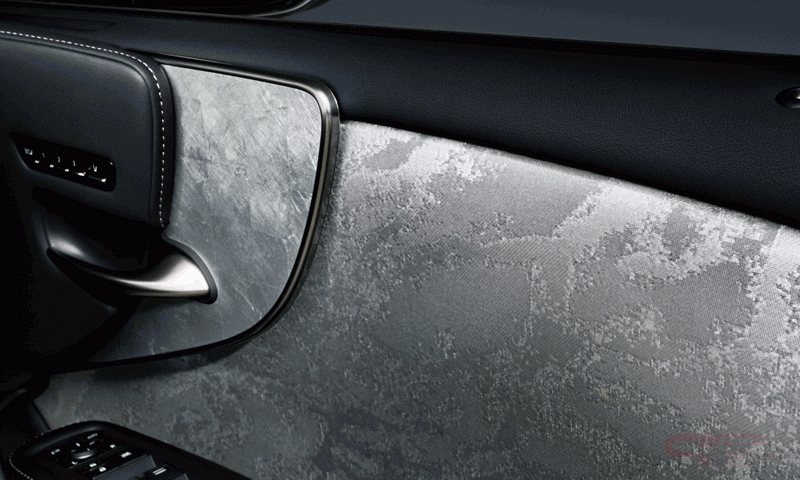 今回のマイナーチェンジでは、レクサス独自の上質な走りの深化を目指し、DNAである静粛性と乗り心地の進化を追求。パワートレーンやサスペンションからシート縫い位置などの細部に至るまで徹底的なつくりこみを実施した。エクステリアデザインでは、ヘッドランプ周りの意匠変更や、フロントグリルとリヤコンビネーションランプの表面処理を変更したほか、進化した塗装技術によって深い陰影と艶やかで鏡面のような質感を実現した新規外板色の「銀影(ぎんえい)ラスター」を設定した。インテリアにおいては、タッチディスプレイの採用による操作性向上に加え、日本独自の美意識に由来した世界観をインテリア空間に取り入れるために、銀糸を織り込んだ西陣織®とプラチナ箔などの匠の手によってつくられる素材を採用した。