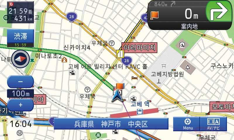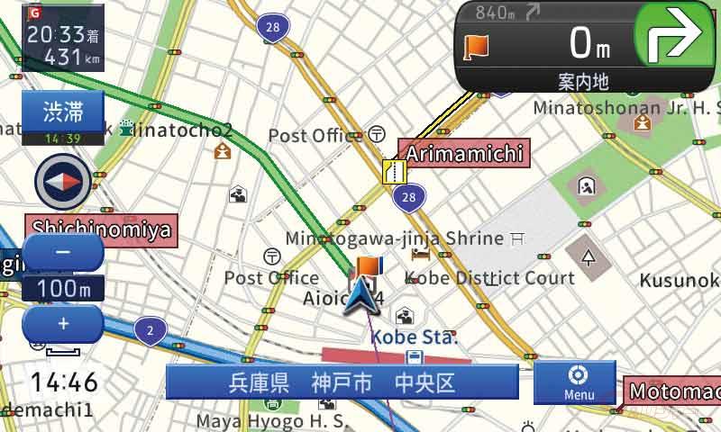 動画を再生しながらのナビ操作など高負荷がかかる処理もクアッドコア搭載により操作がスムーズに行える。地図のピンチ操作(拡大・縮小)では滑らかな縮尺切り替えができる上、ダブルタップ、2点タップで段階ごとに地図スケールを変えることもでき、画面を注視することなく快適に操作が可能。メニュー画面ではリスト選択スクロールで軽快な操作でページの切り替えができる。