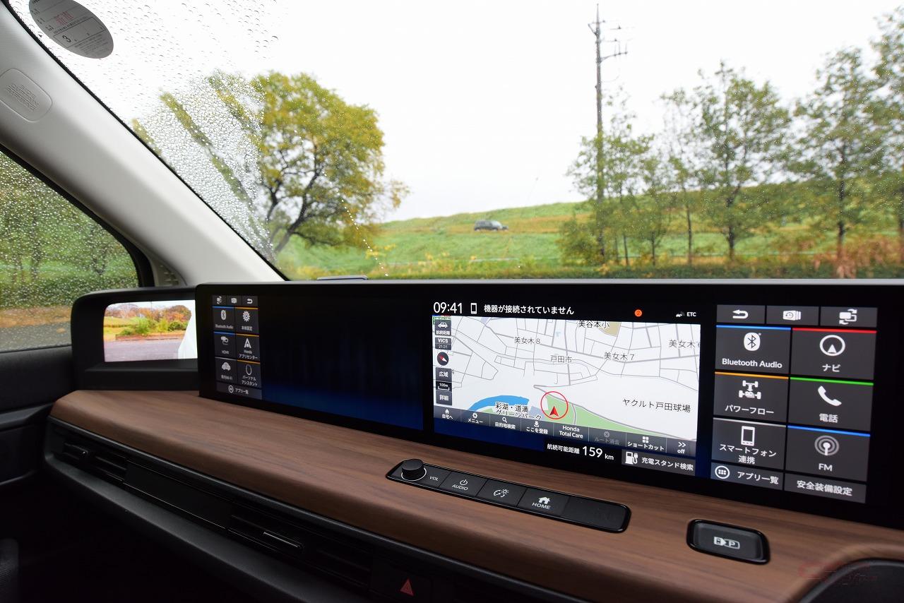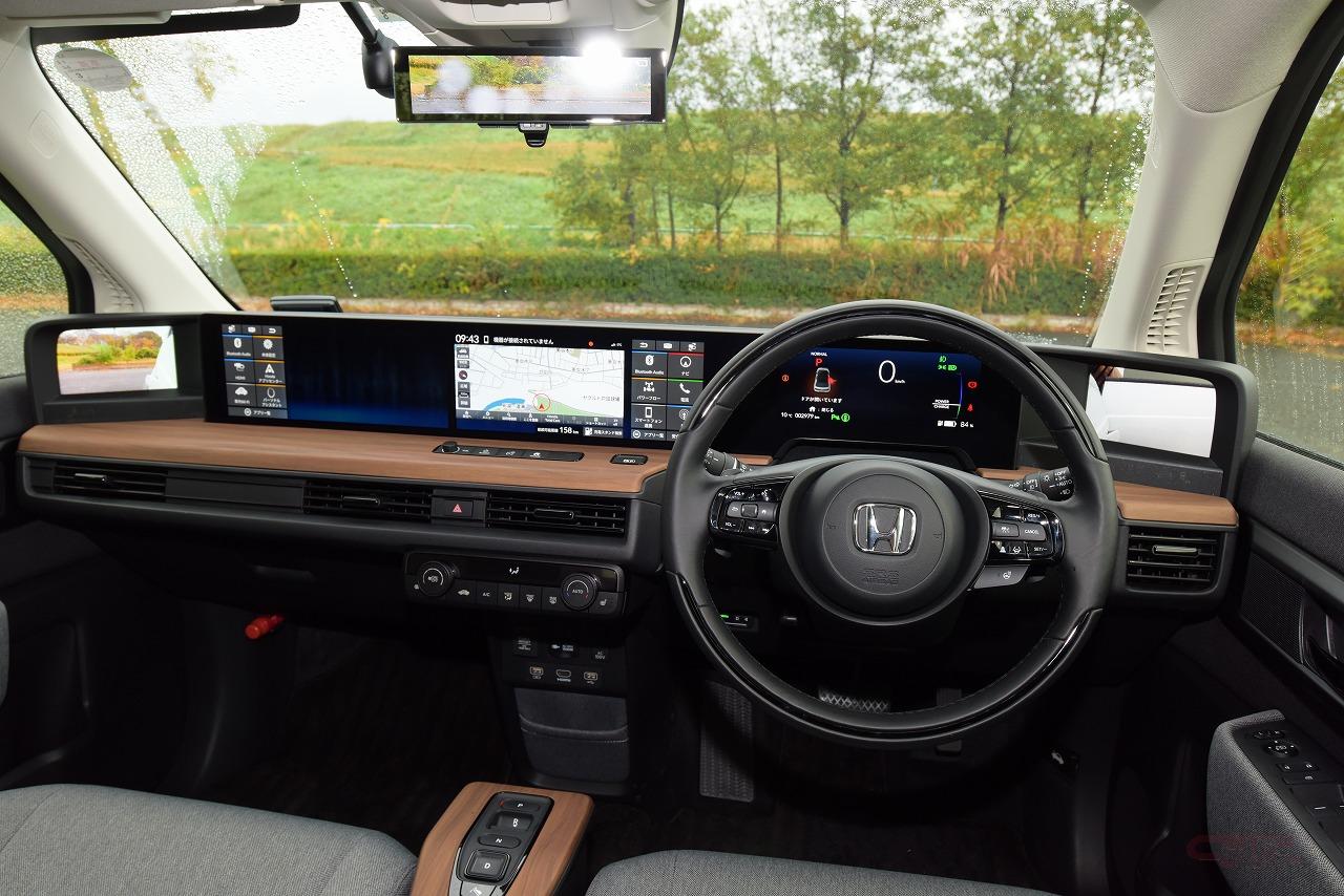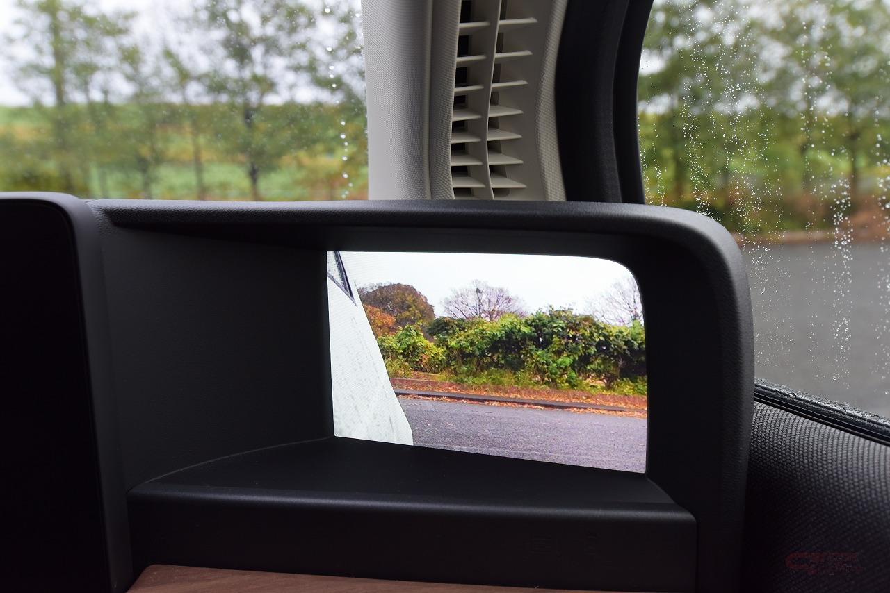ホンダ車初採用の電子ドアミラーは、死角も少なく慣れれば鏡のミラーと遜色のないレベルで使えた。さらに、試乗時は一時的に降雨となったが、電子ミラーだと窓ガラスに付着した水滴越しにミラーを見るということが無いので、降雨時の視認性は電子ミラーのほうが高かった。