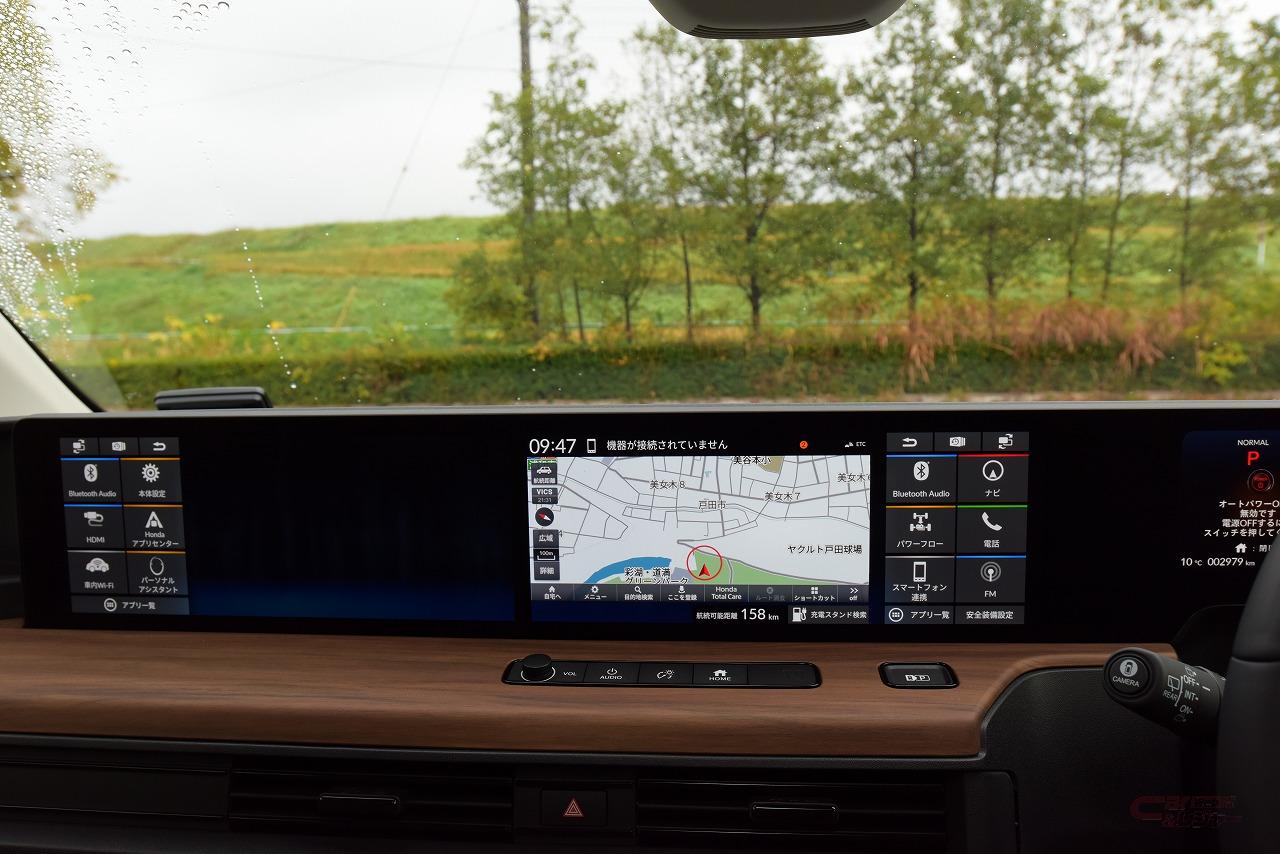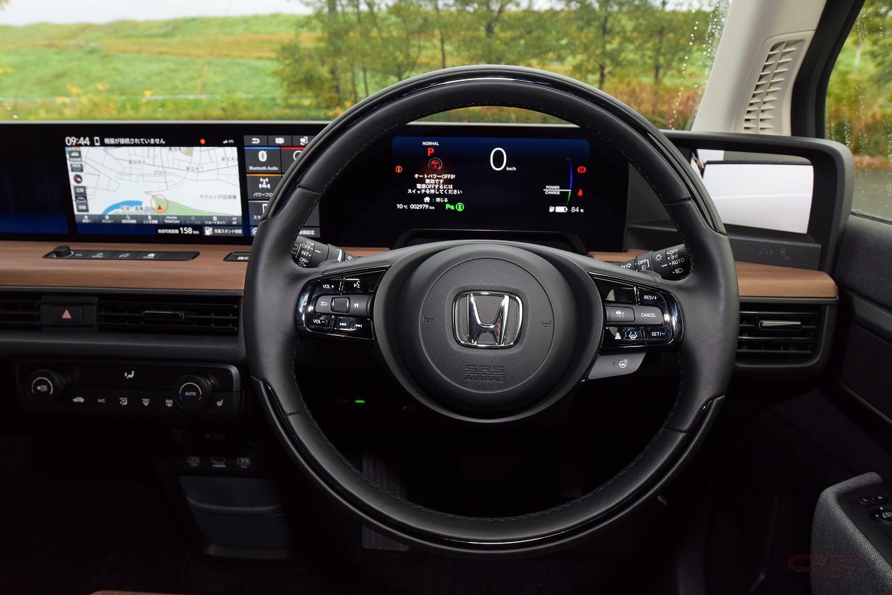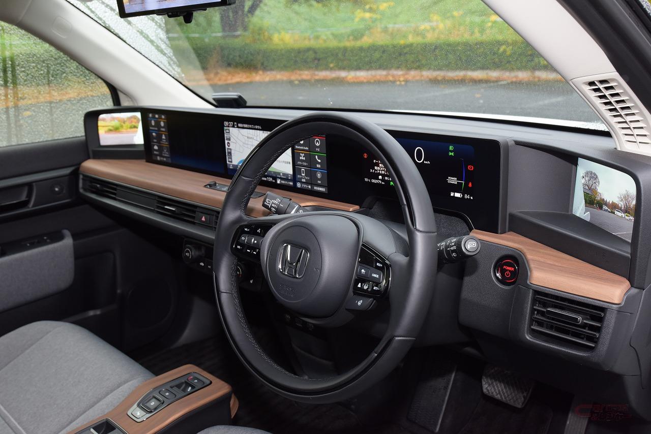 ホンダ車初採用の電子ドアミラーは、死角も少なく慣れれば鏡のミラーと遜色のないレベルで使えた。さらに、試乗時は一時的に降雨となったが、電子ミラーだと窓ガラスに付着した水滴越しにミラーを見るということが無いので、降雨時の視認性は電子ミラーのほうが高かった。