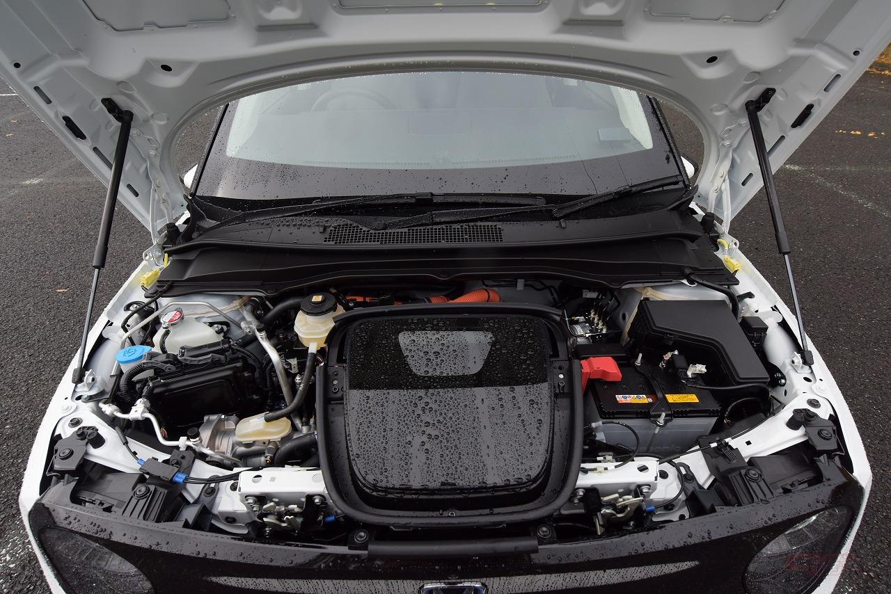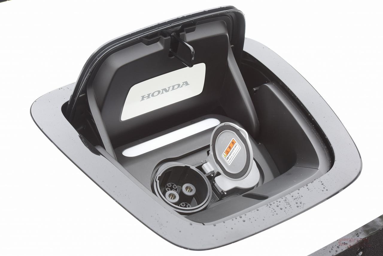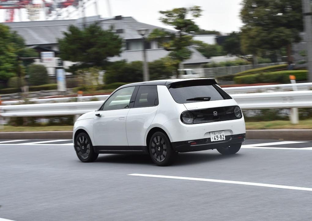 Honda eは新開発された後輪駆動のEV専用プラットフォームを採用し、前後重量配分50:50を実現。最高出力154PS(アドバンス)と、3.0L V6エンジン並みの最大トルク315Nmを発揮する電動モーターをリヤに搭載するRRレイアウトであることも大きな特徴だ。