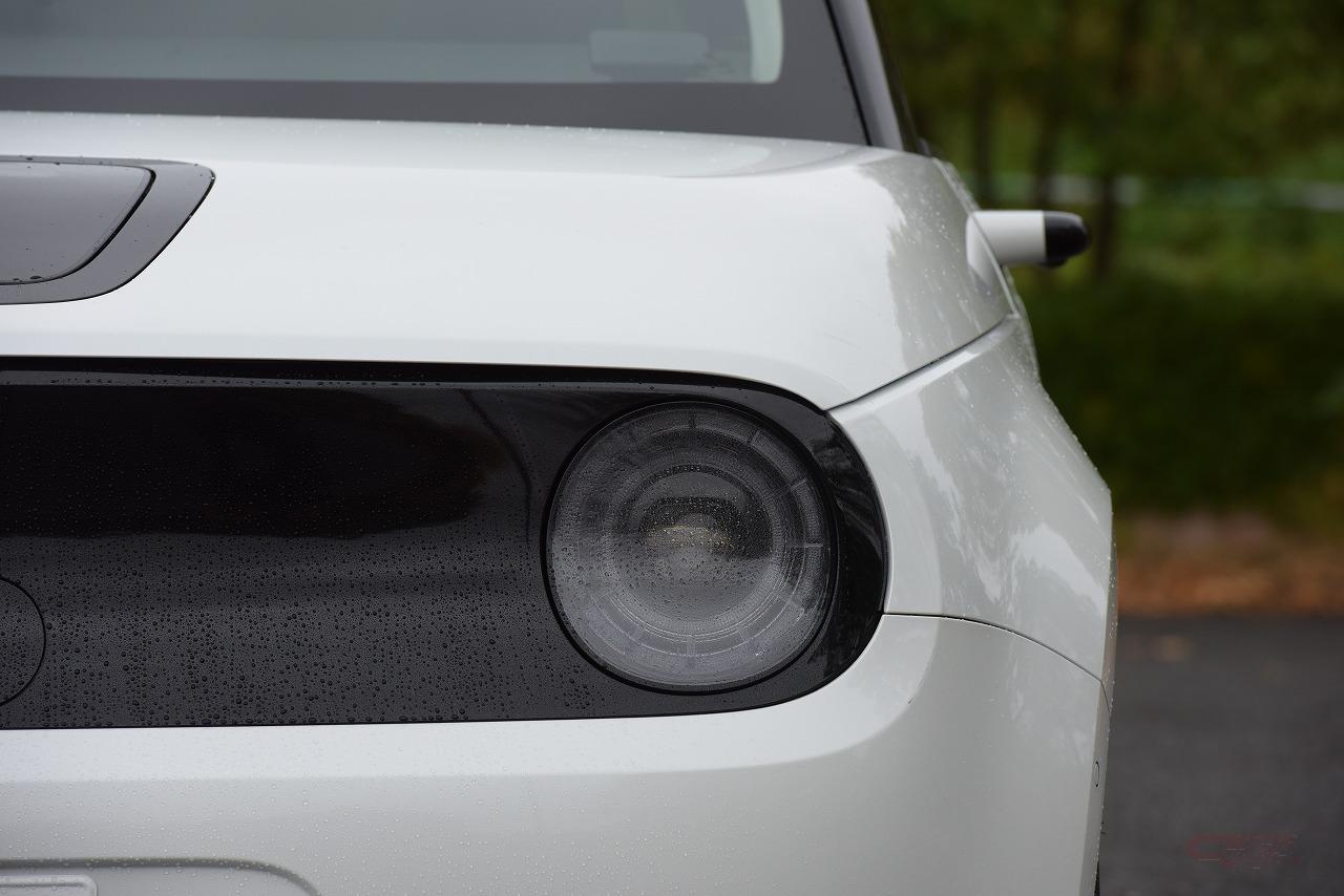 デザインは、昨年の東京モーターショーでコンセプトとして公開されたスタイルとほぼ変わらず、エクステリアは円を基調としたキャラクターが印象的。時代の先端を行くEVでありながら、レトロな雰囲気も醸し出している。EVに必要不可欠な充電/給電ポートはフロントの中央に配置され、リッドは触り心地が良い全面ガラスとすることで、毎日使う場所だからこそシンプルで美しいデザインに仕立てたそうだ。
